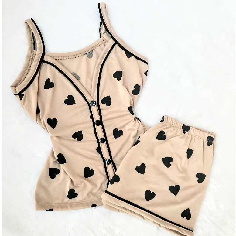 Pijama Americano Feminino Verão Alça Blogueira Amamentação Com Botões