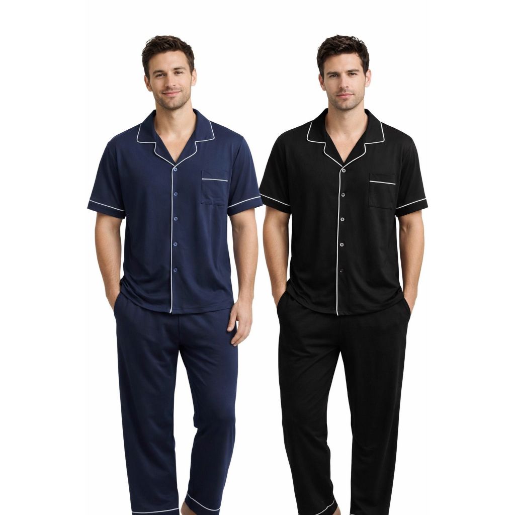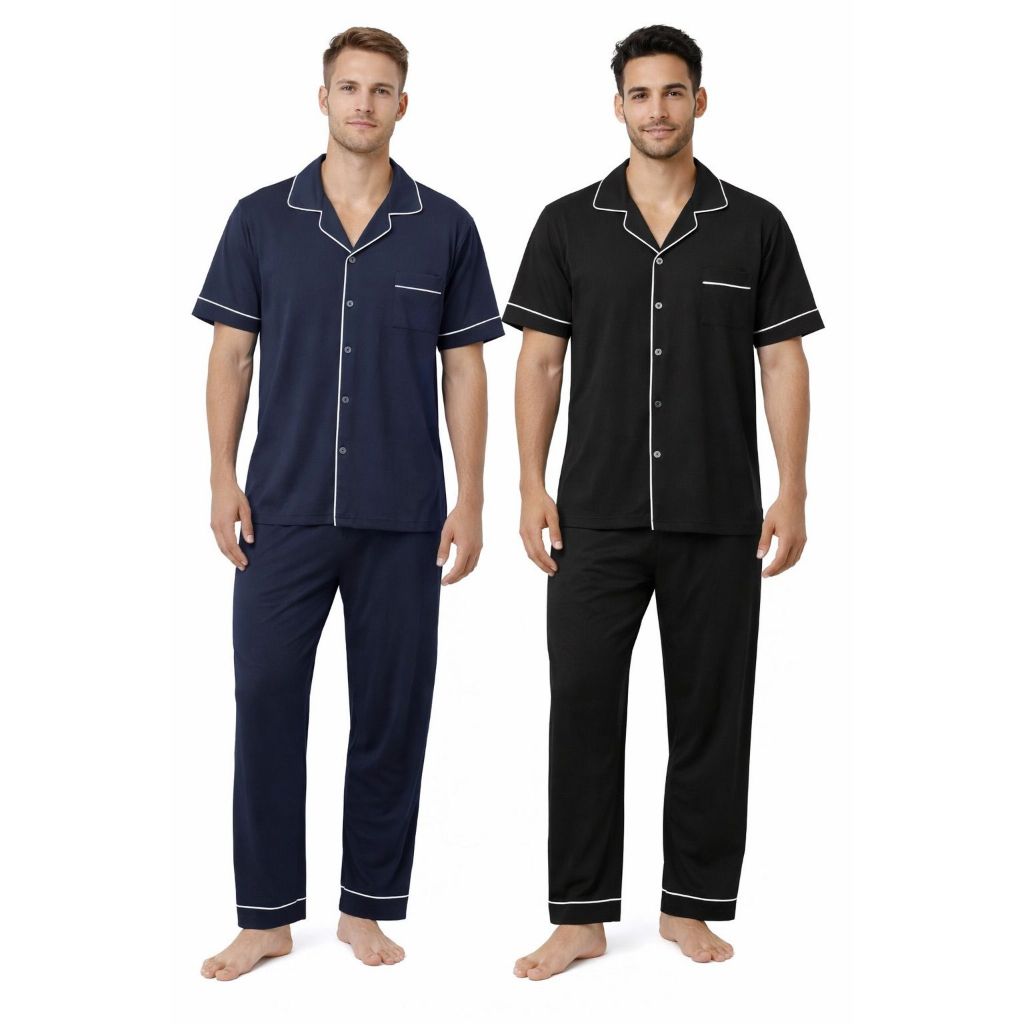 Pijama Americano Masculino em Algodão com Elastano, bolsos e gola estruturada e Bolsos