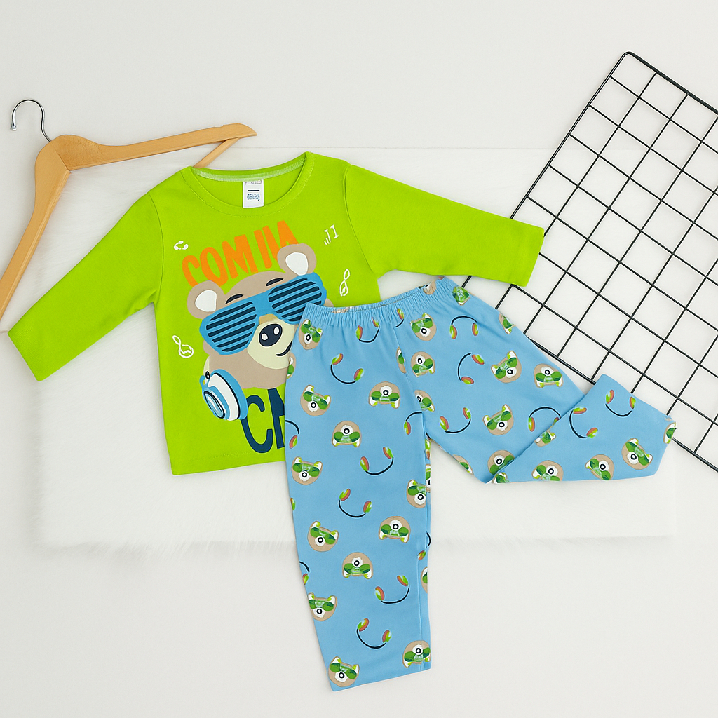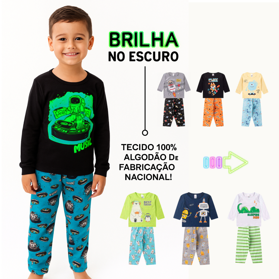 Pijama BRILHA NO ESCURO Manga Longa Frio Menino Sortido Conjunto Juvenil 100% Algodão