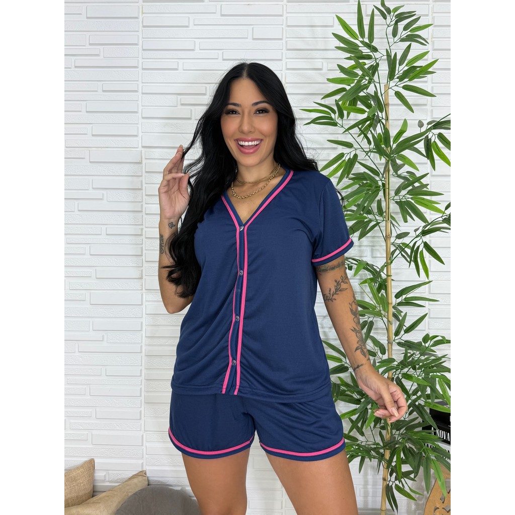 Pijama Baby Doll Amamentação Americano Cirurgico com botoes luxo Malha blogueirinha