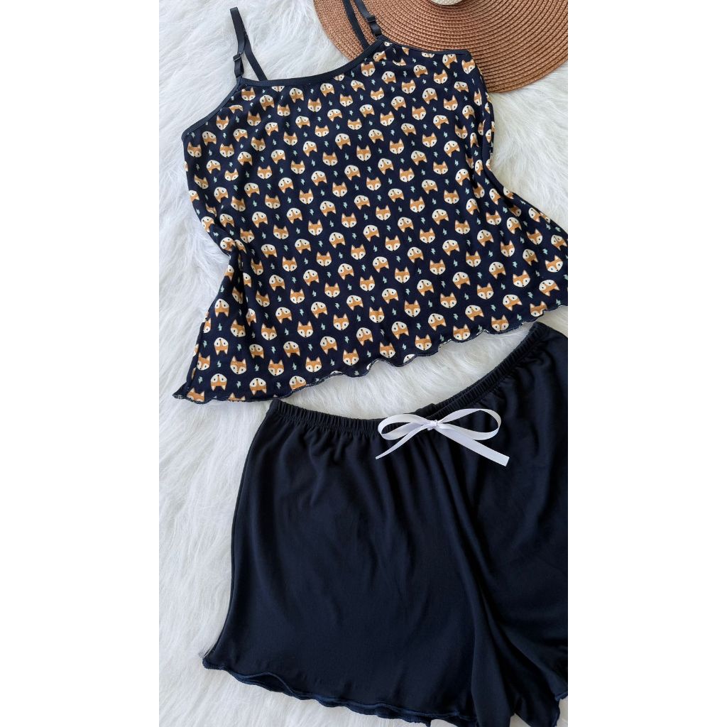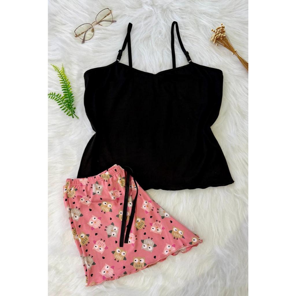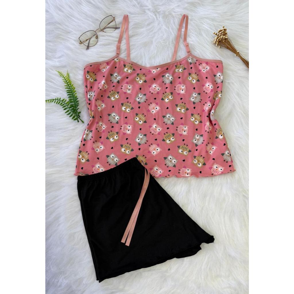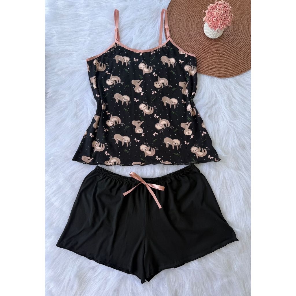 Pijama Baby Doll Conjunto Short Doll Feminino em suede estampado