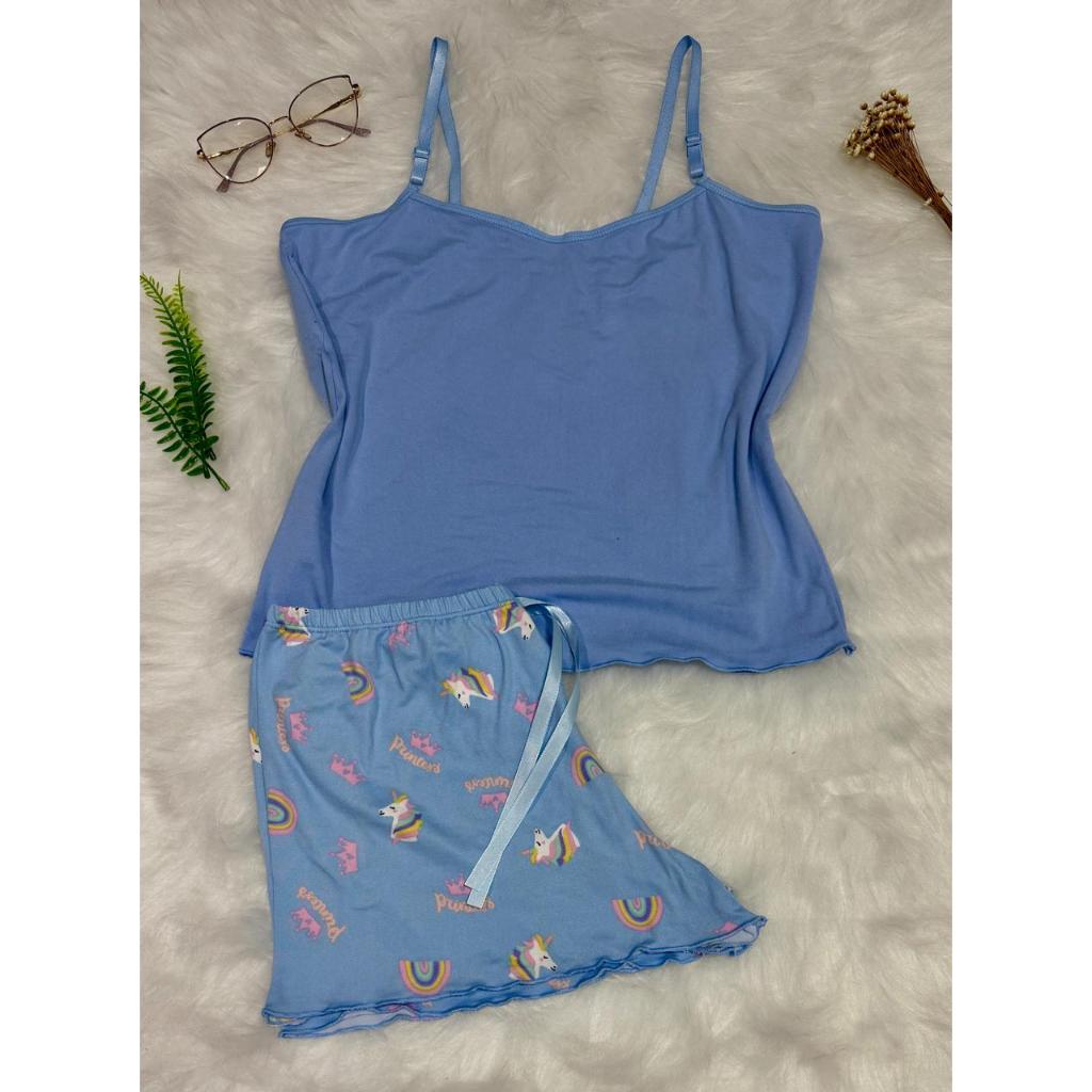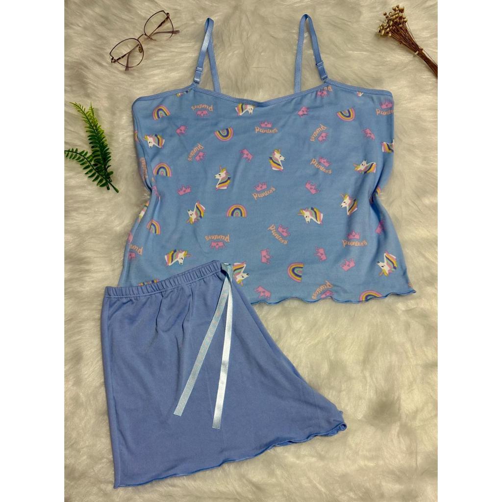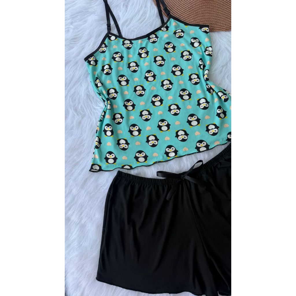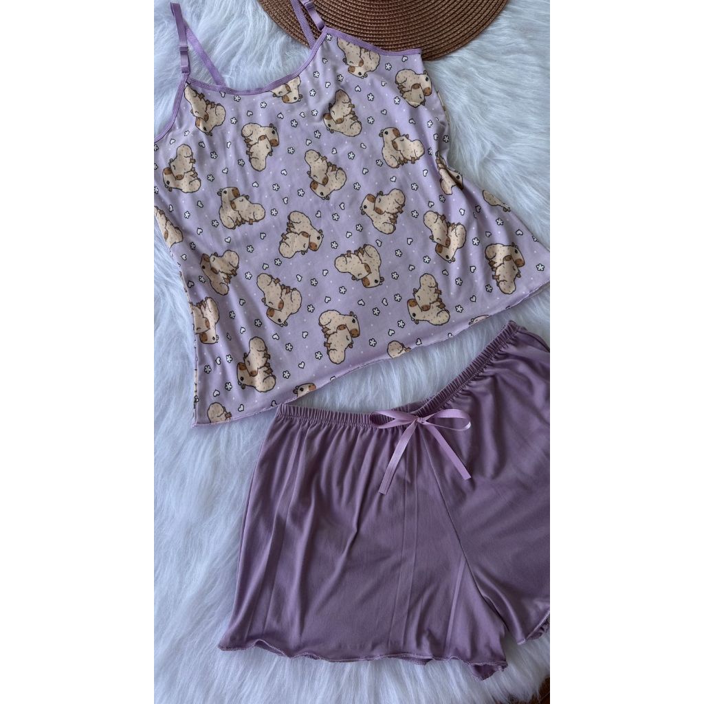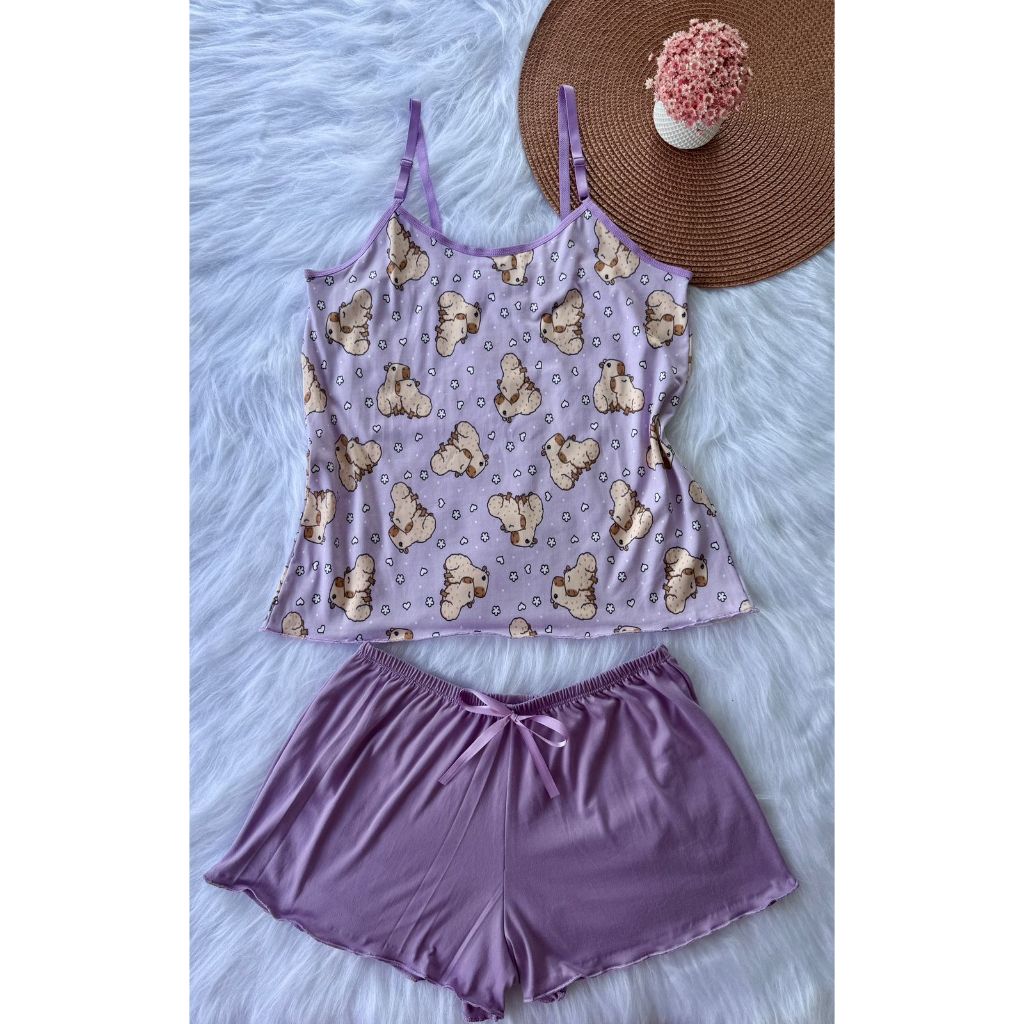 Pijama Baby Doll Conjunto Short Doll Feminino em suede estampado