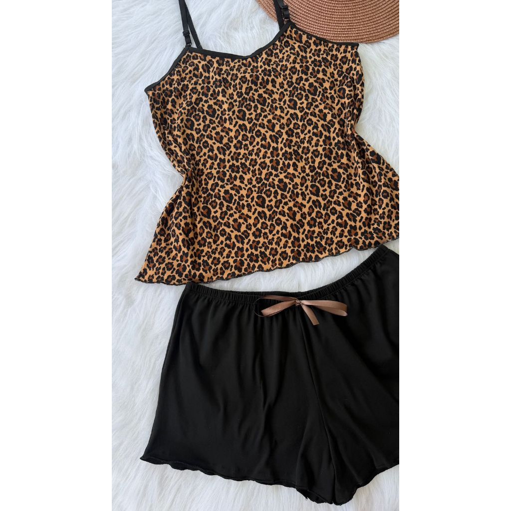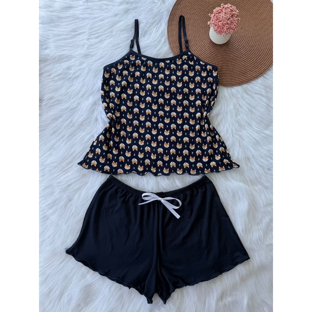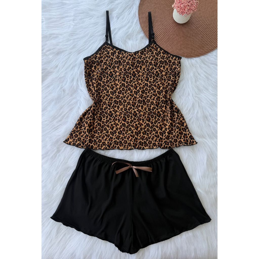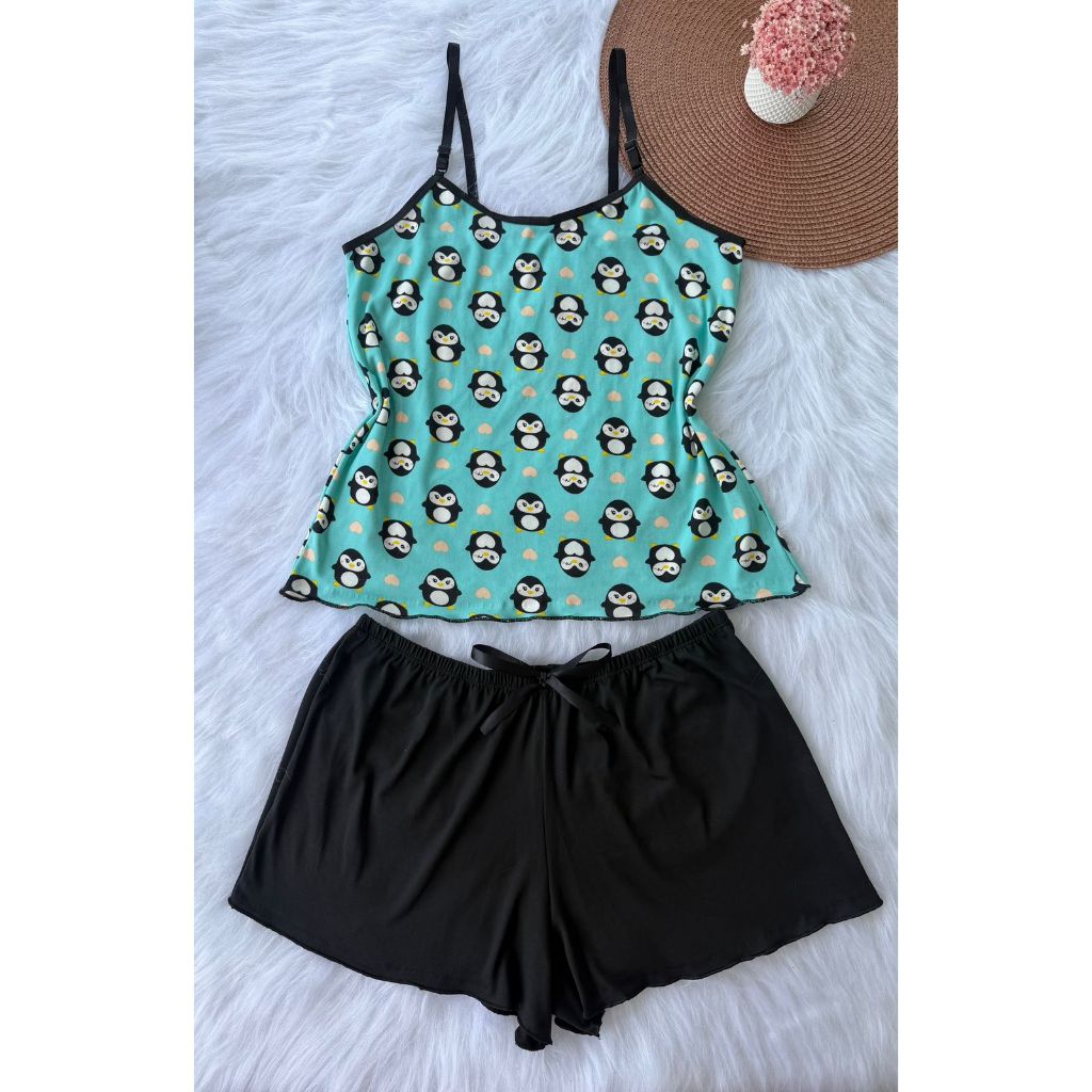 Pijama Baby Doll Conjunto Short Doll Feminino em suede estampado