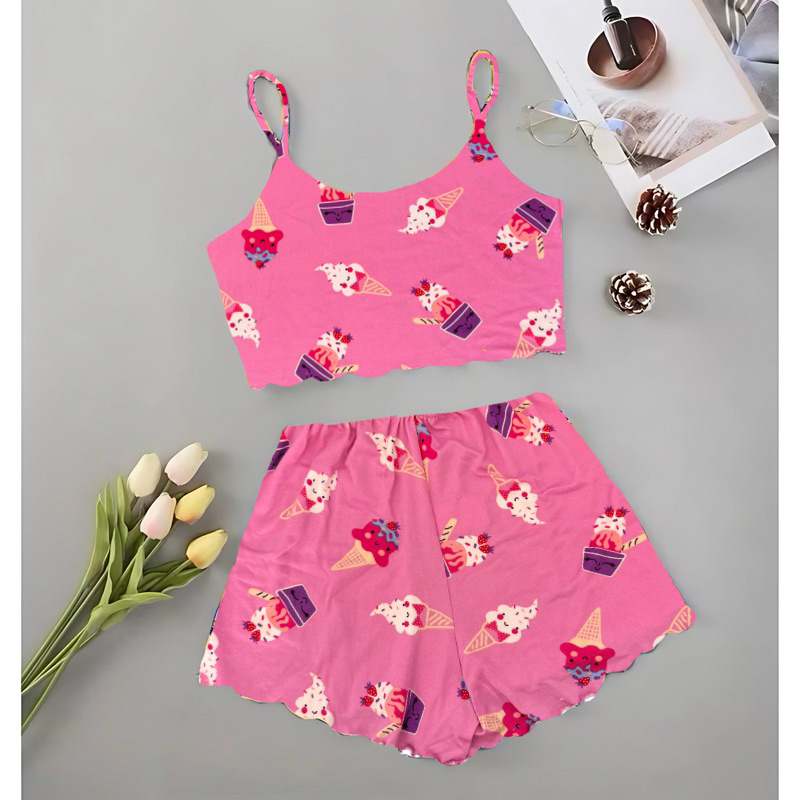 Pijama Baby Doll Cropped Alcinha Verão Sortida