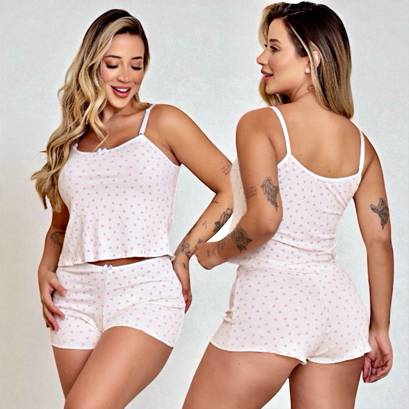 Pijama Baby Doll Estampado Sexy sensual conforto Short Doll Feminino Canelado Roupa De Dormir Linha Noite Lingerie Sexy