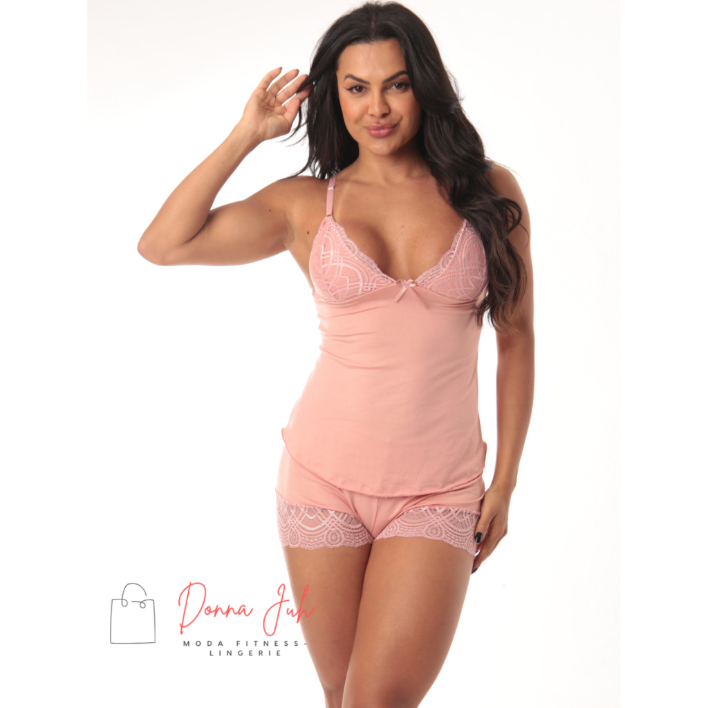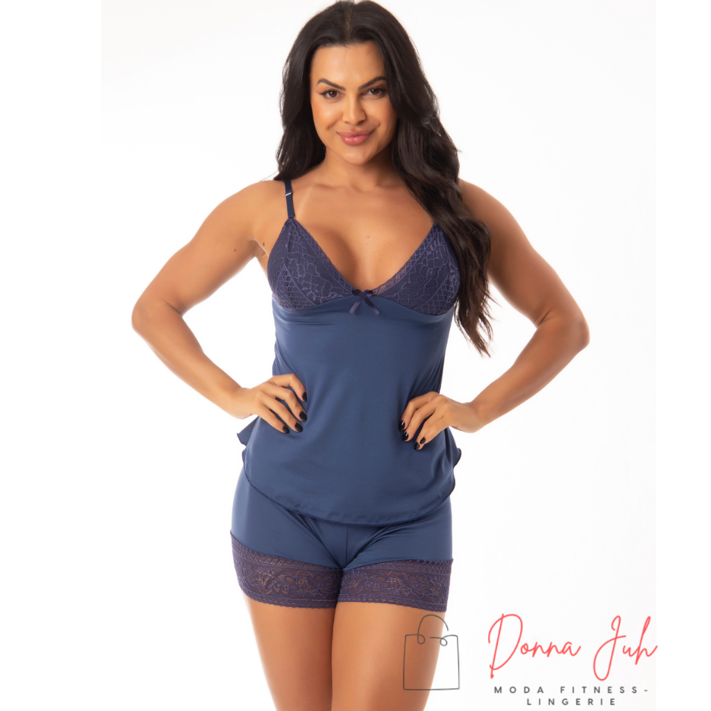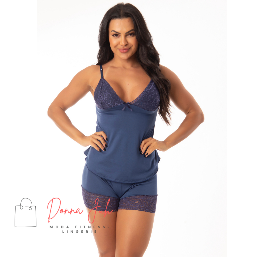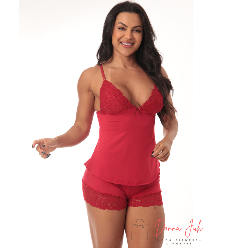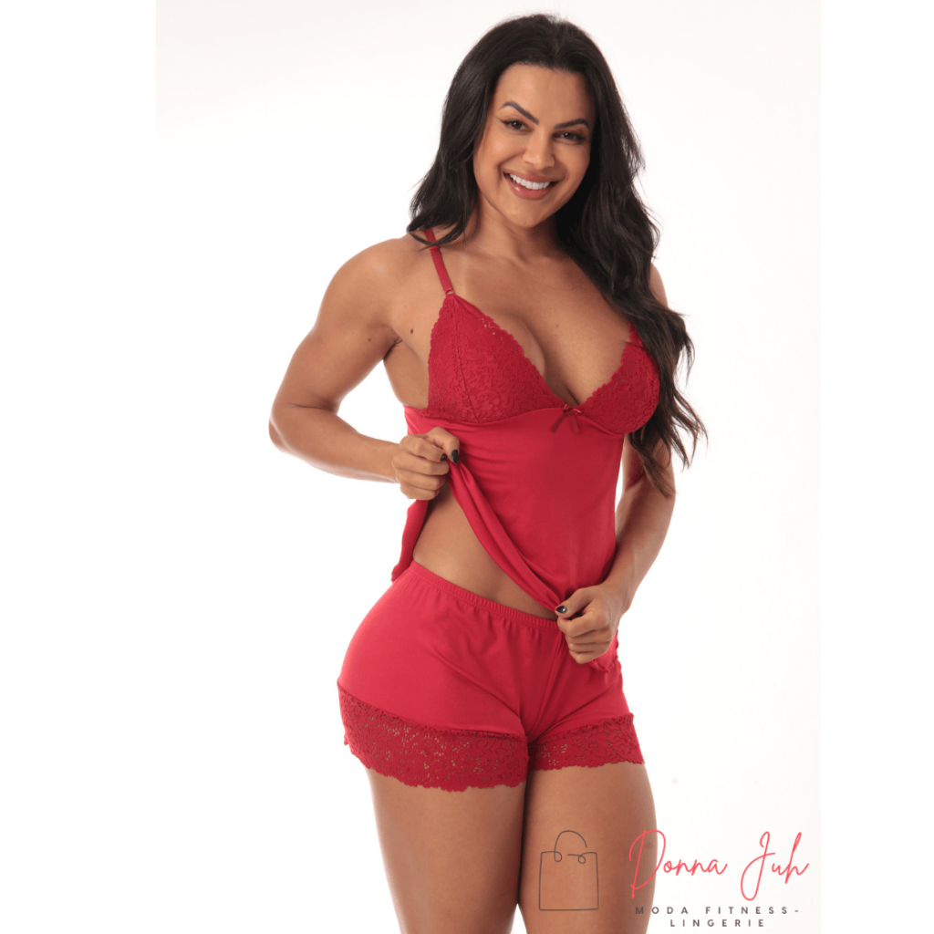 Pijama Baby Doll Feminino Conjunto Renda Short Doll Cores Feminino Roupa de Dormir M G GG