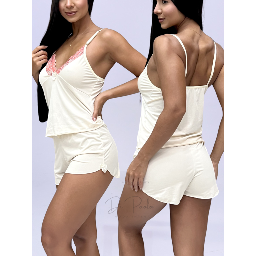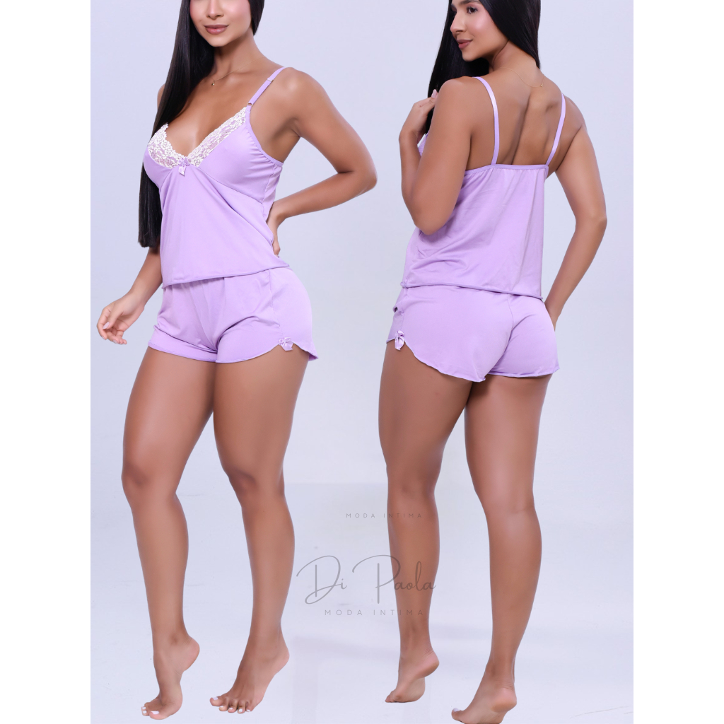 Pijama Baby Doll Malha Fria Tecido Fresquinho Roupa De Dormir Molinho Confortavel Langerie Sensual Detalhe em Renda