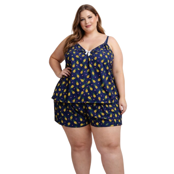 Pijama Baby Doll Plus Size Feminino – Liganete Geladinha, Super Fresquinho, Alça Regulável