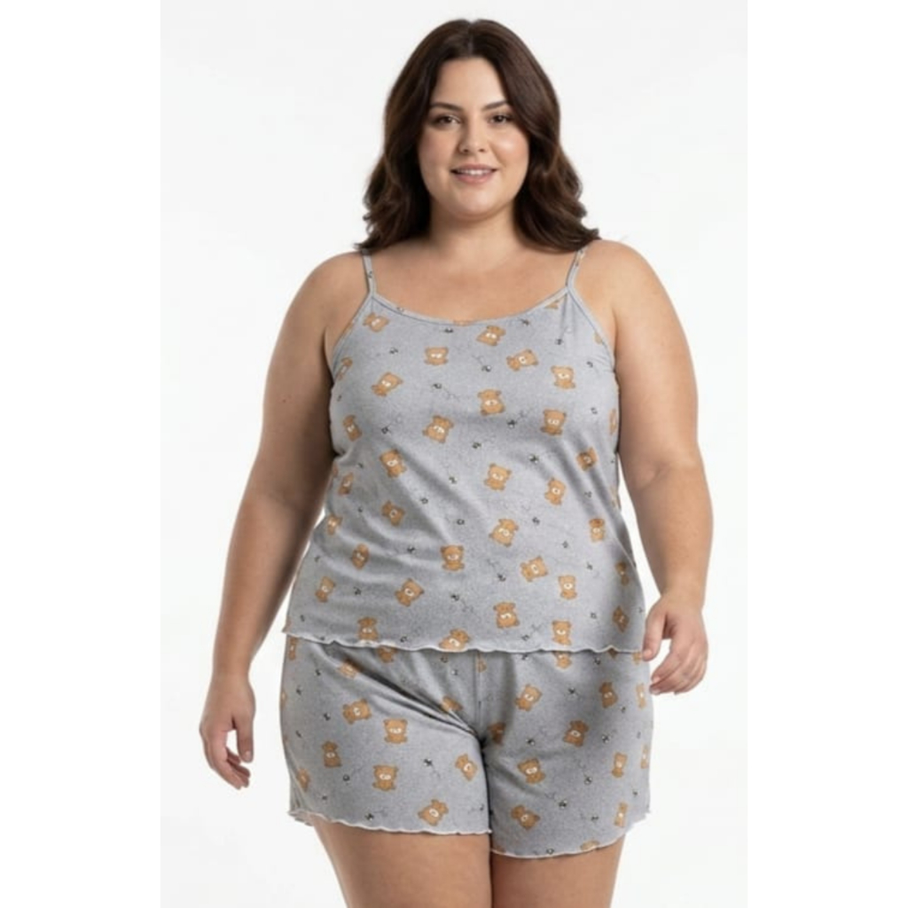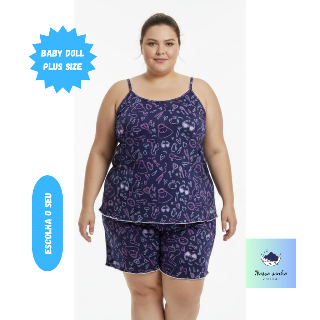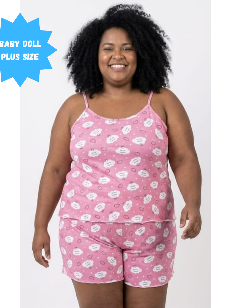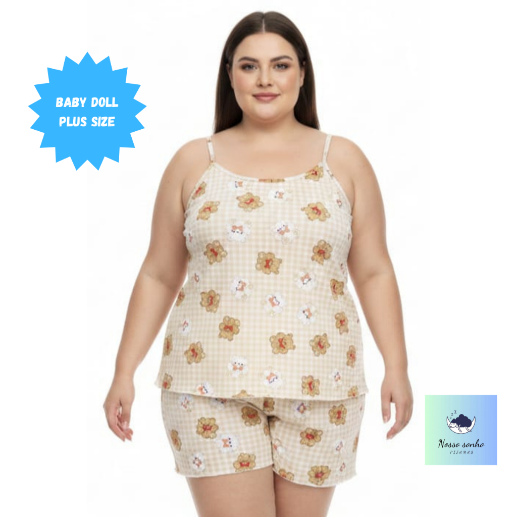 Pijama Baby Doll Plus Size Feminino em Malha Suede / Conjunto Feminino Short Doll Confortavel Feminino Pijamas