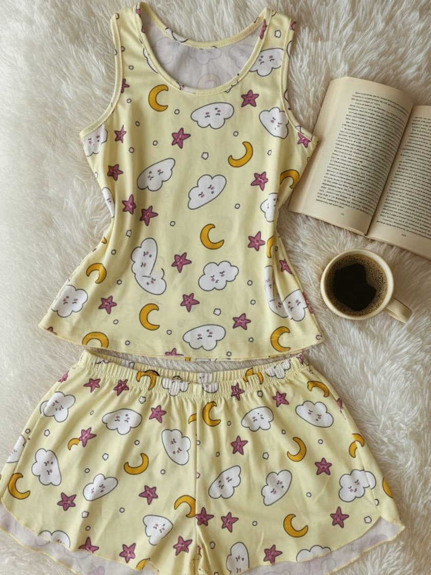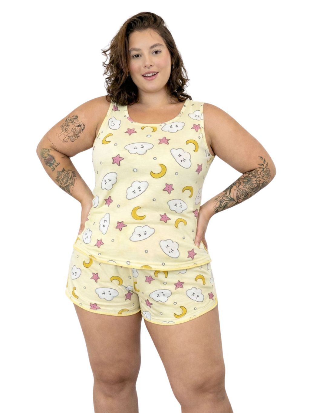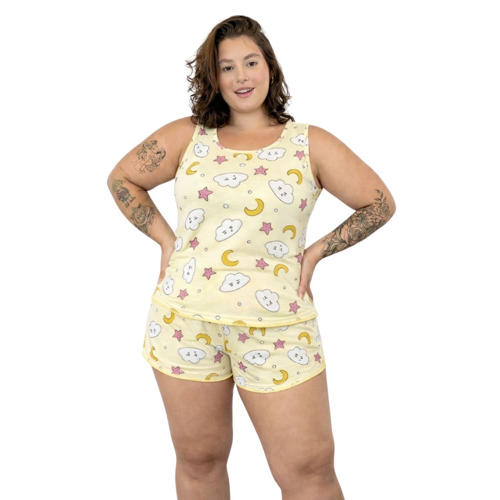 Pijama Baby Doll Regata Plus Size Fresquinho Roupa de Dormir