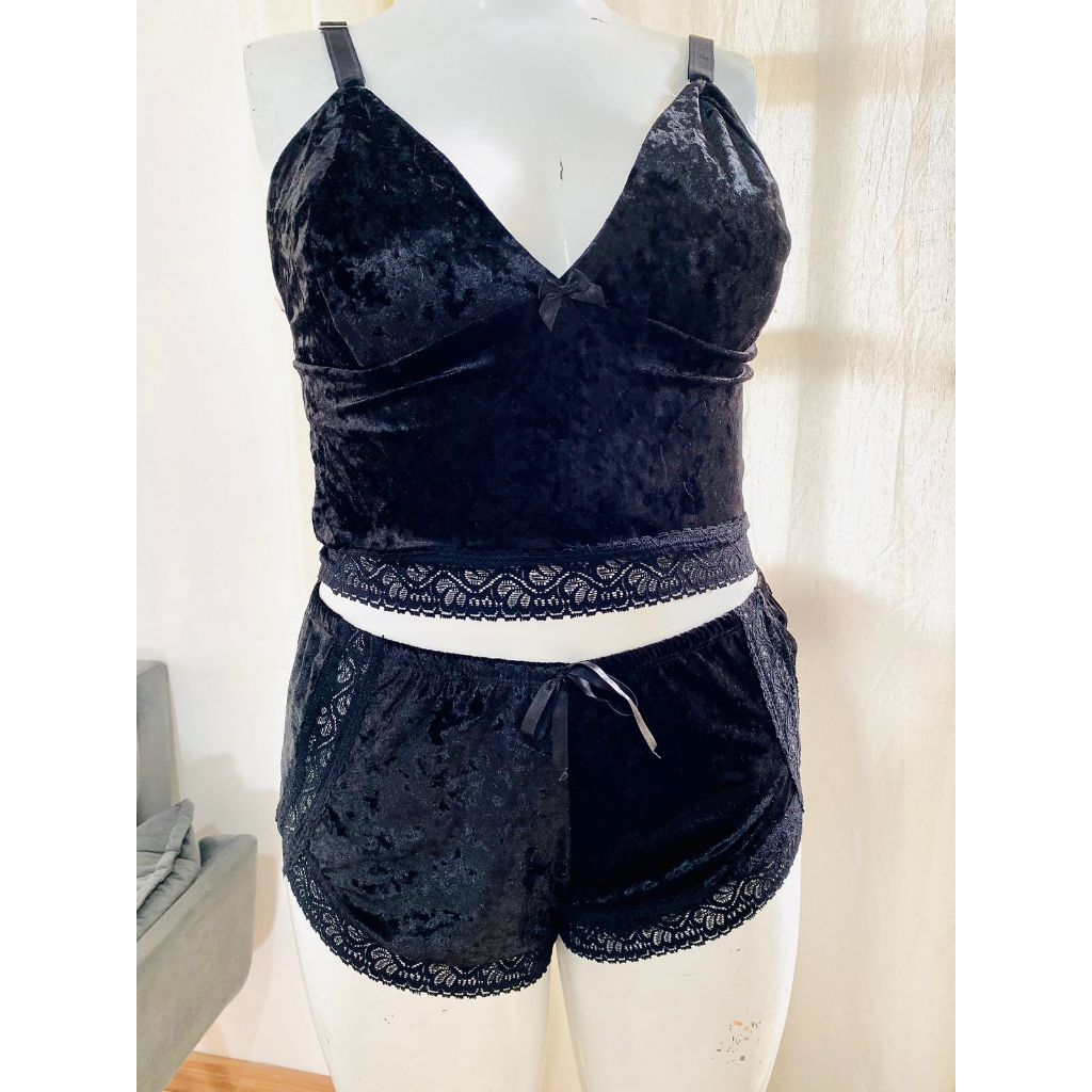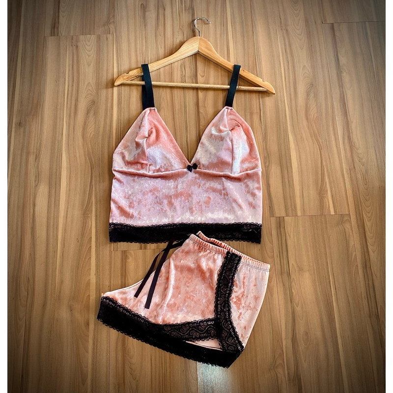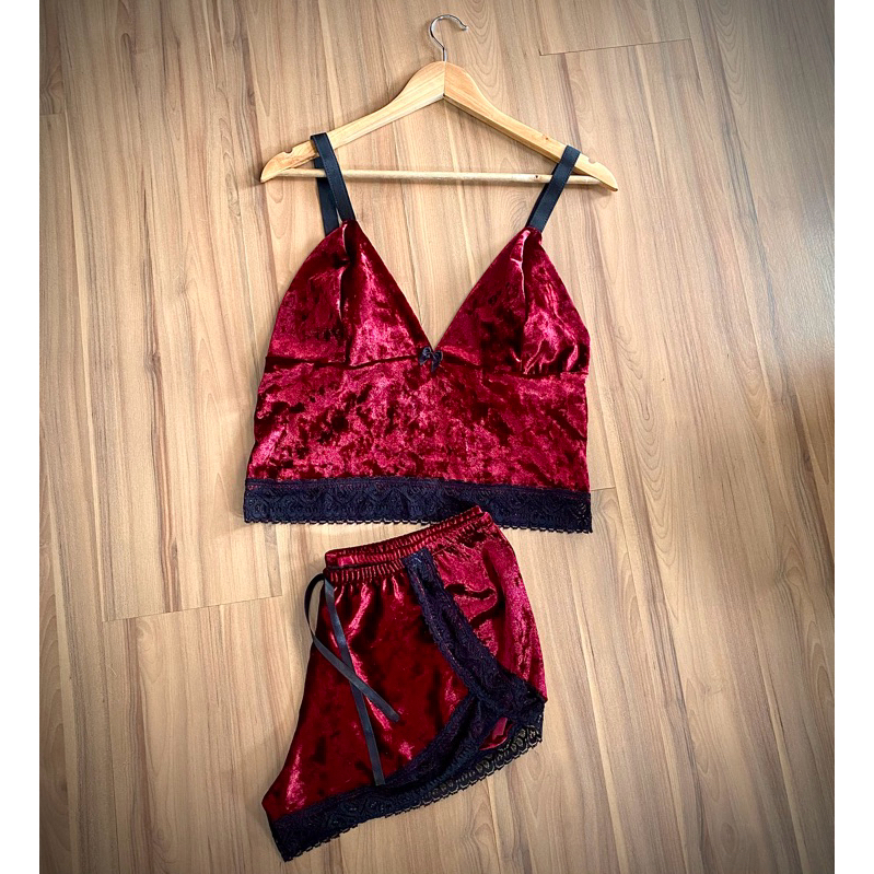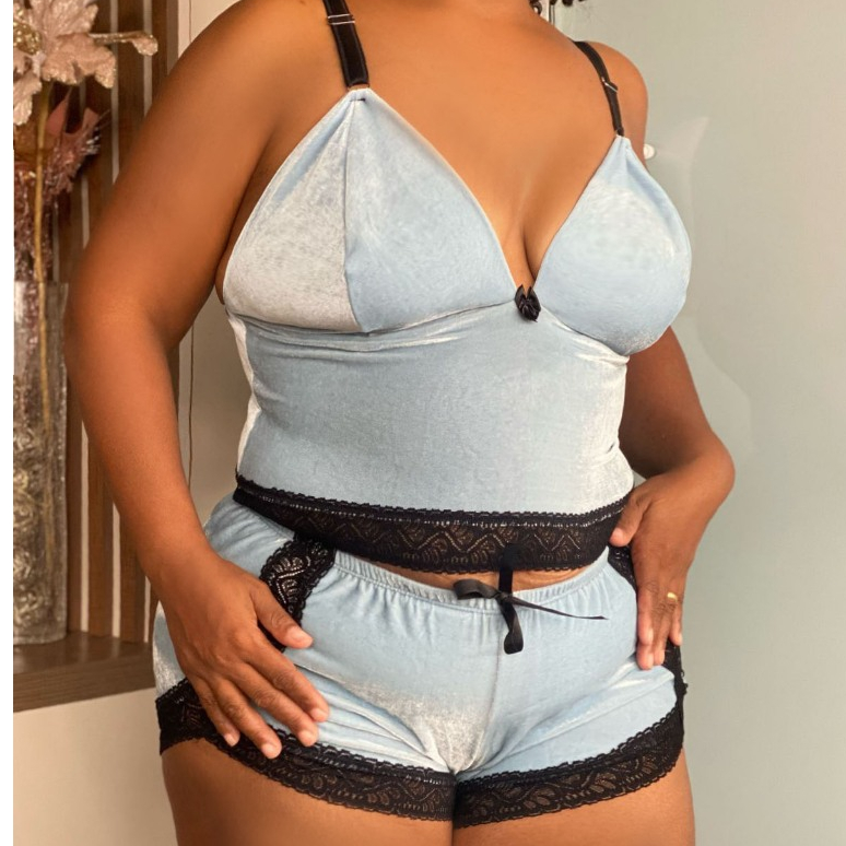 Pijama Baby Doll Short Doll veludo Renda Plus Size roupa de dormir