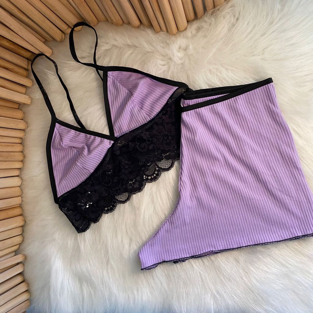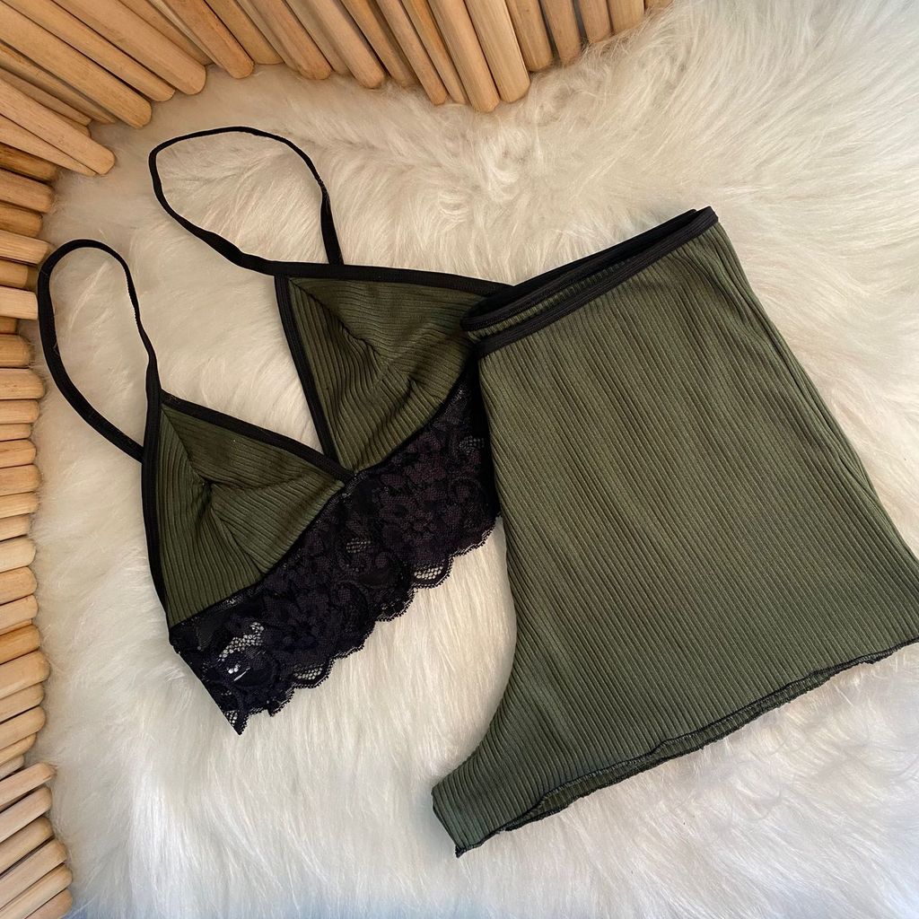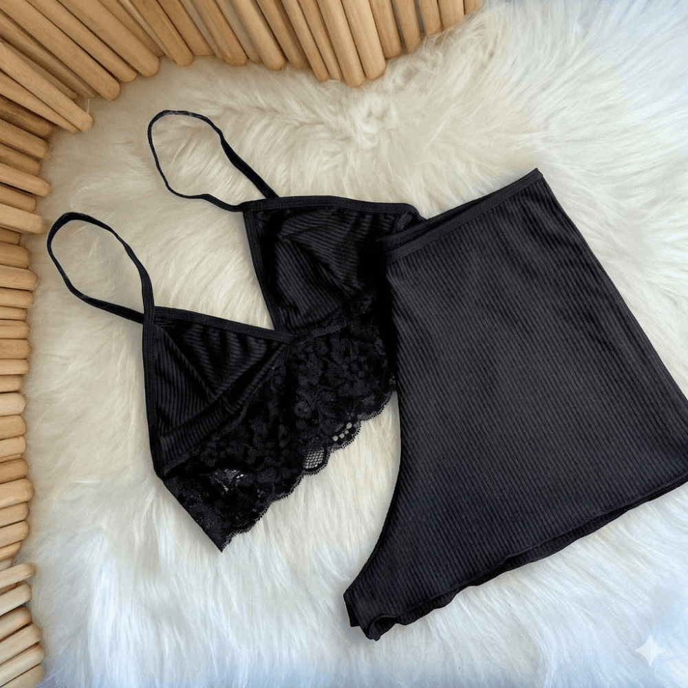 Pijama Baby Dool Canelado com Renda Top Dool Suede Confortável
