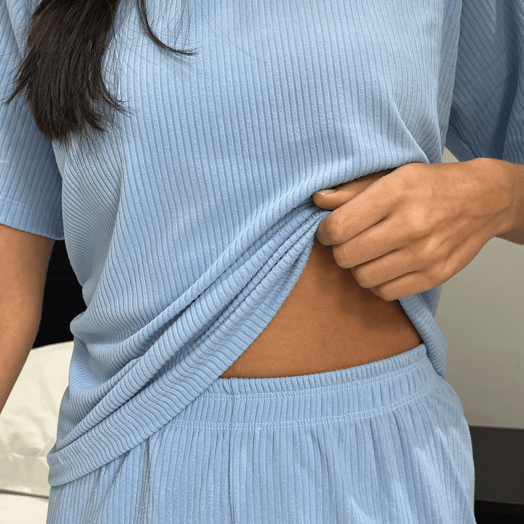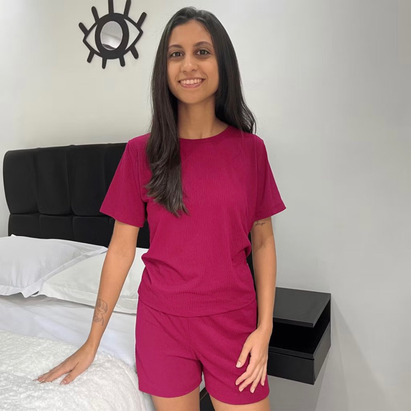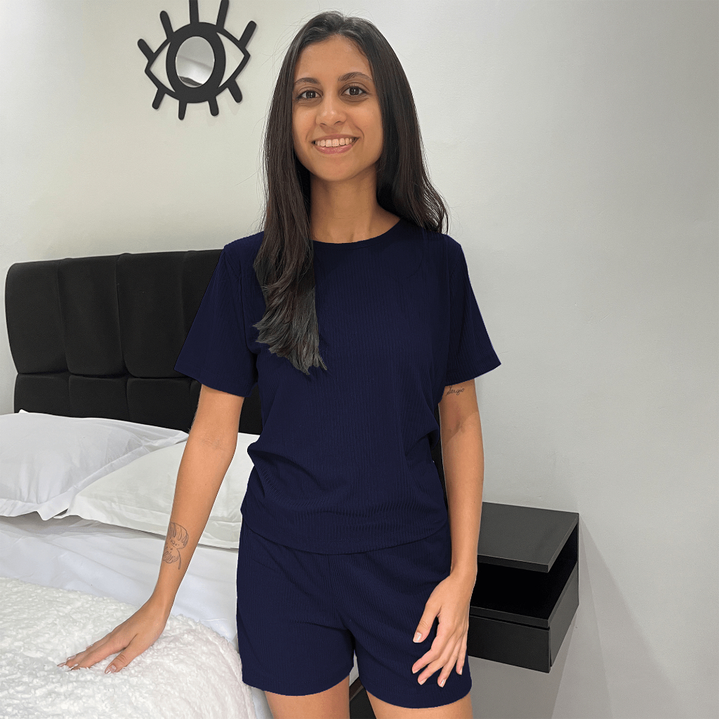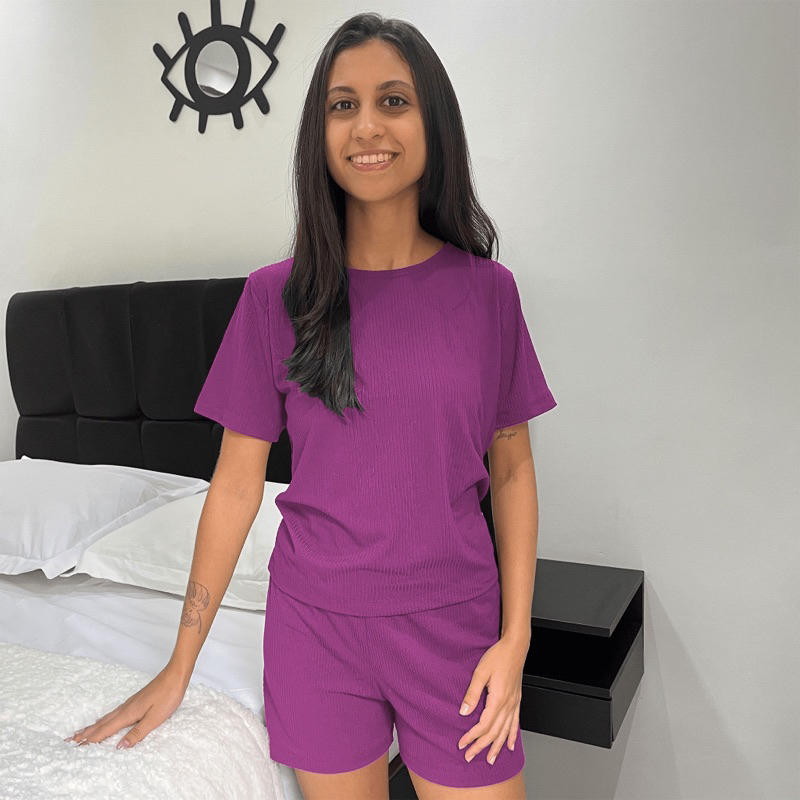 Pijama Feminino Adulto Manga Curta e Short Suede Canelado