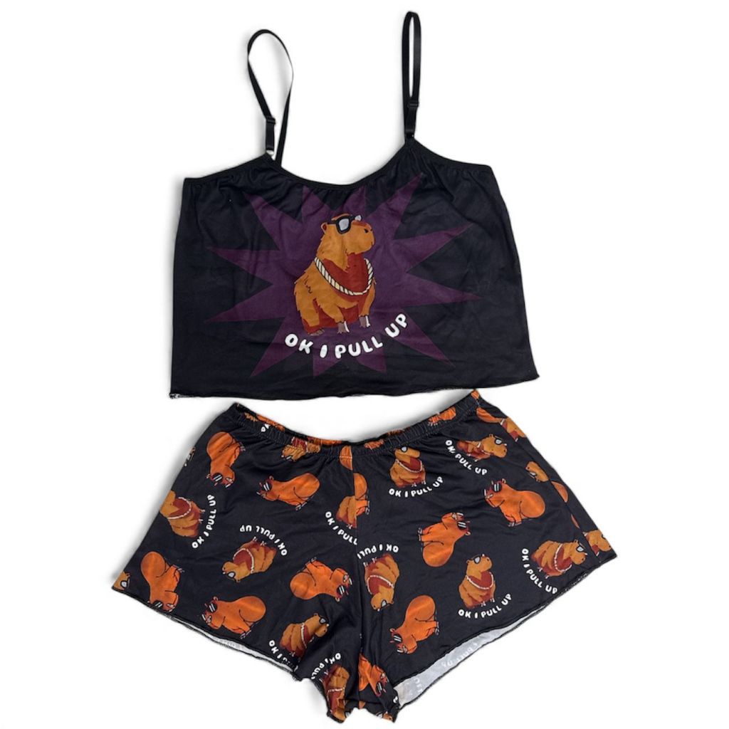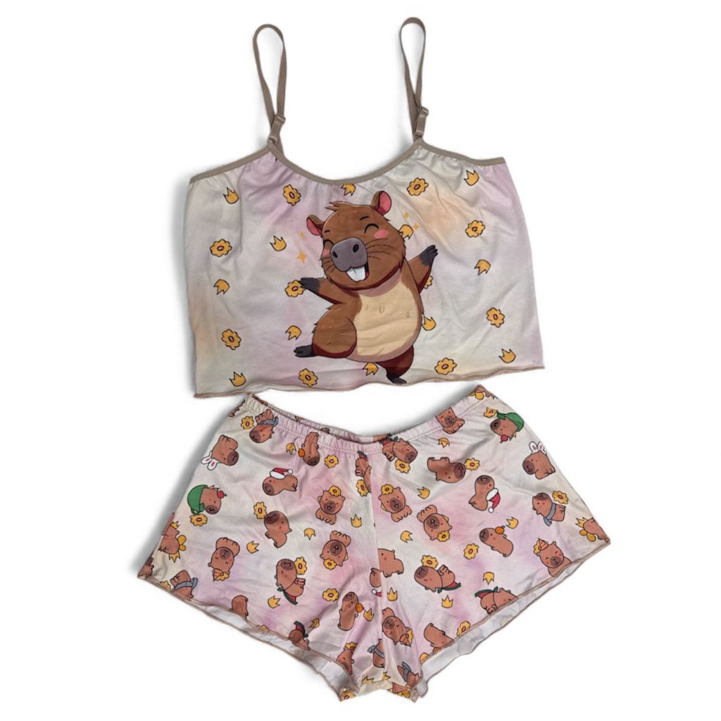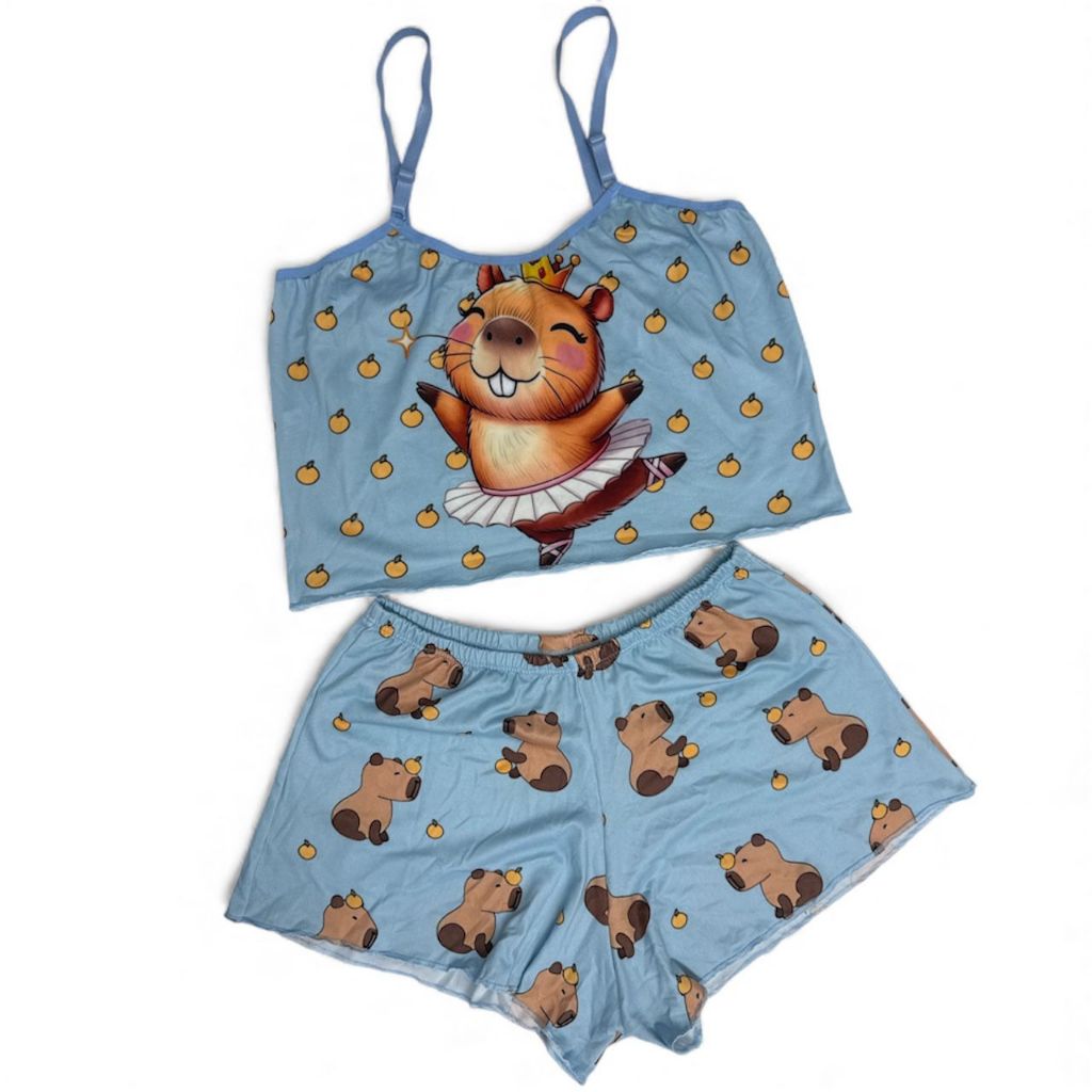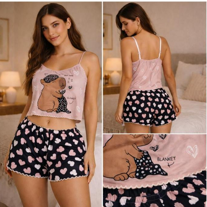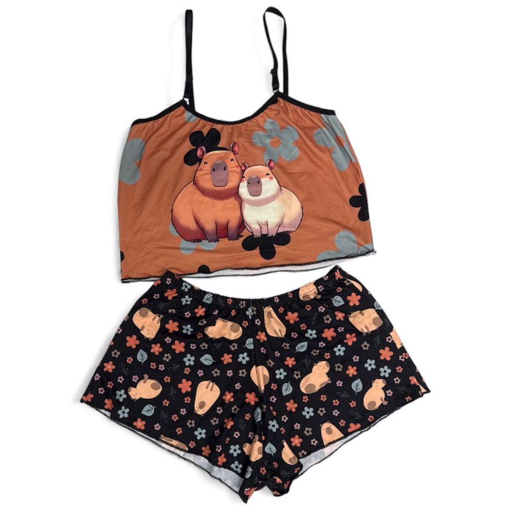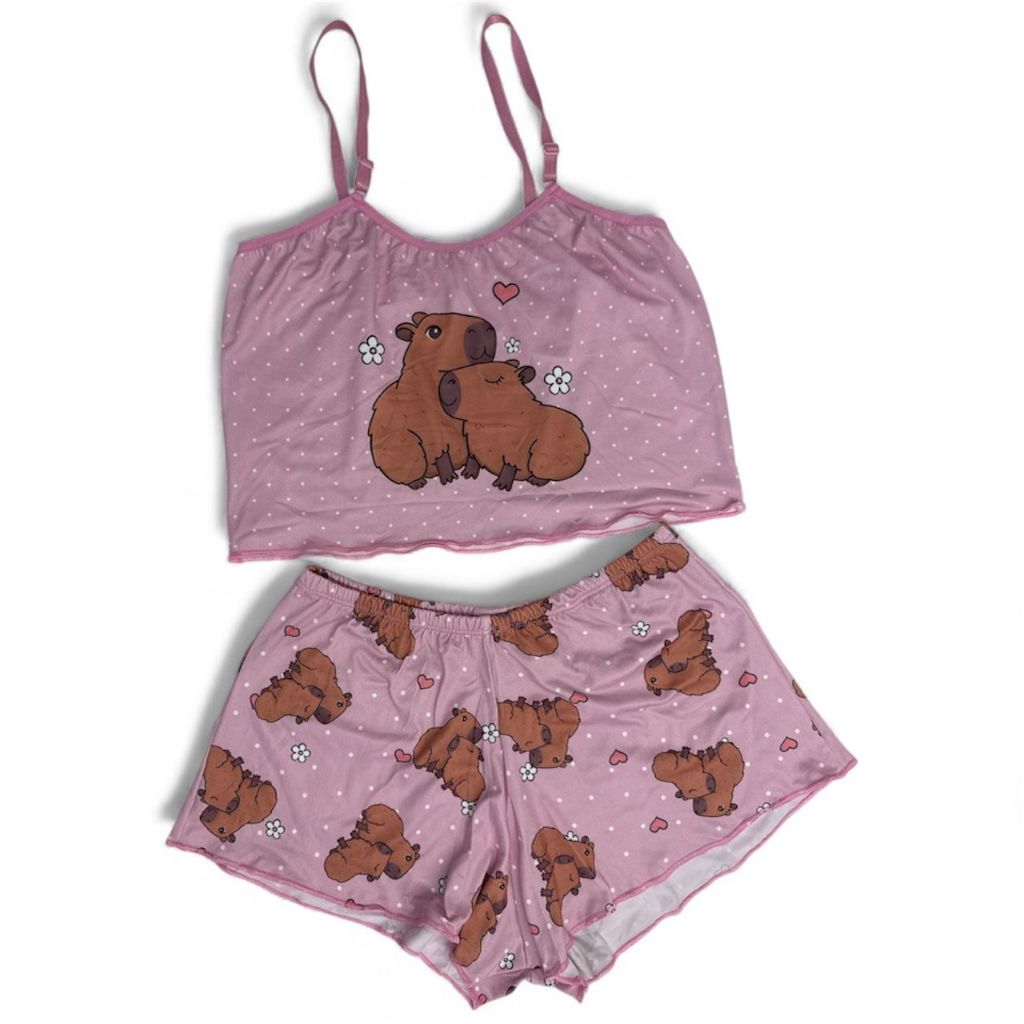 Pijama Feminino Baby Doll Estampa Capivara Estampado Ondinha Virginia curto curtinho sexy