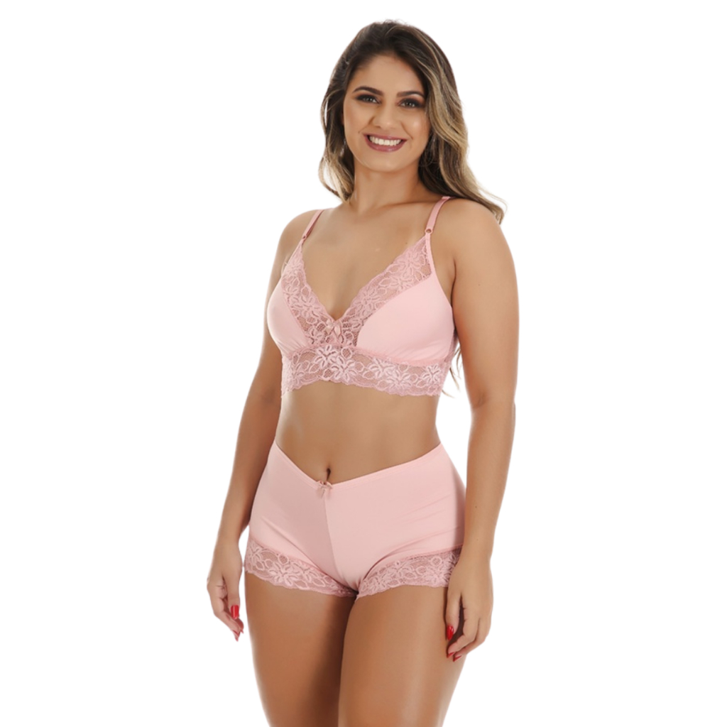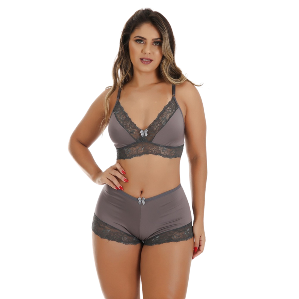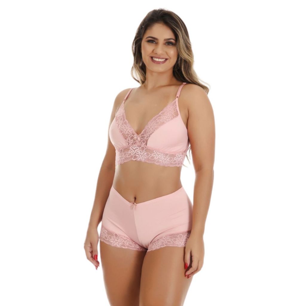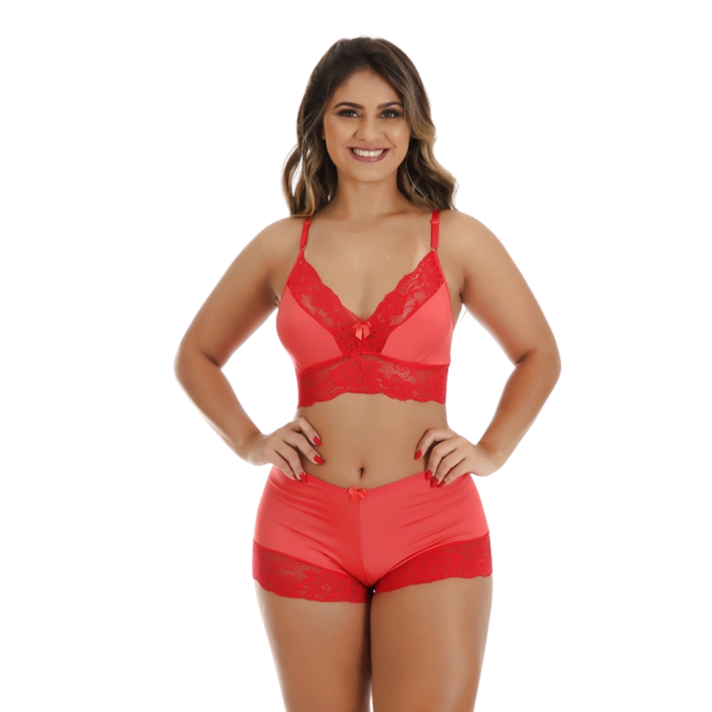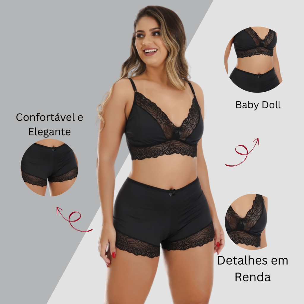 Pijama Feminino Confortável Linha Noite Baby Doll Lingerie Detalhes Renda Conforto Dormir Short Dool