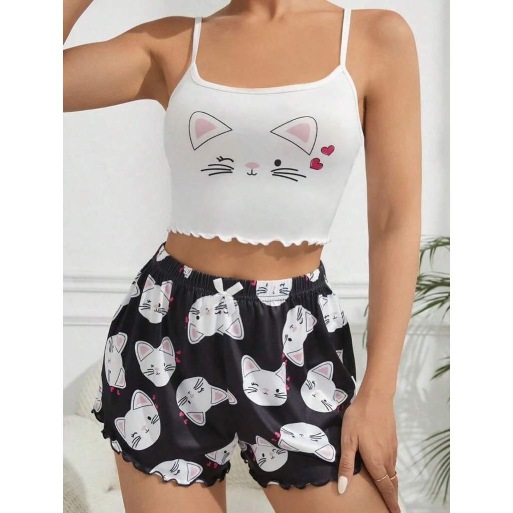 Pijama Feminino Curto Sexy Sensual Dia a dia Confortável Promoção Ondinha Personagem