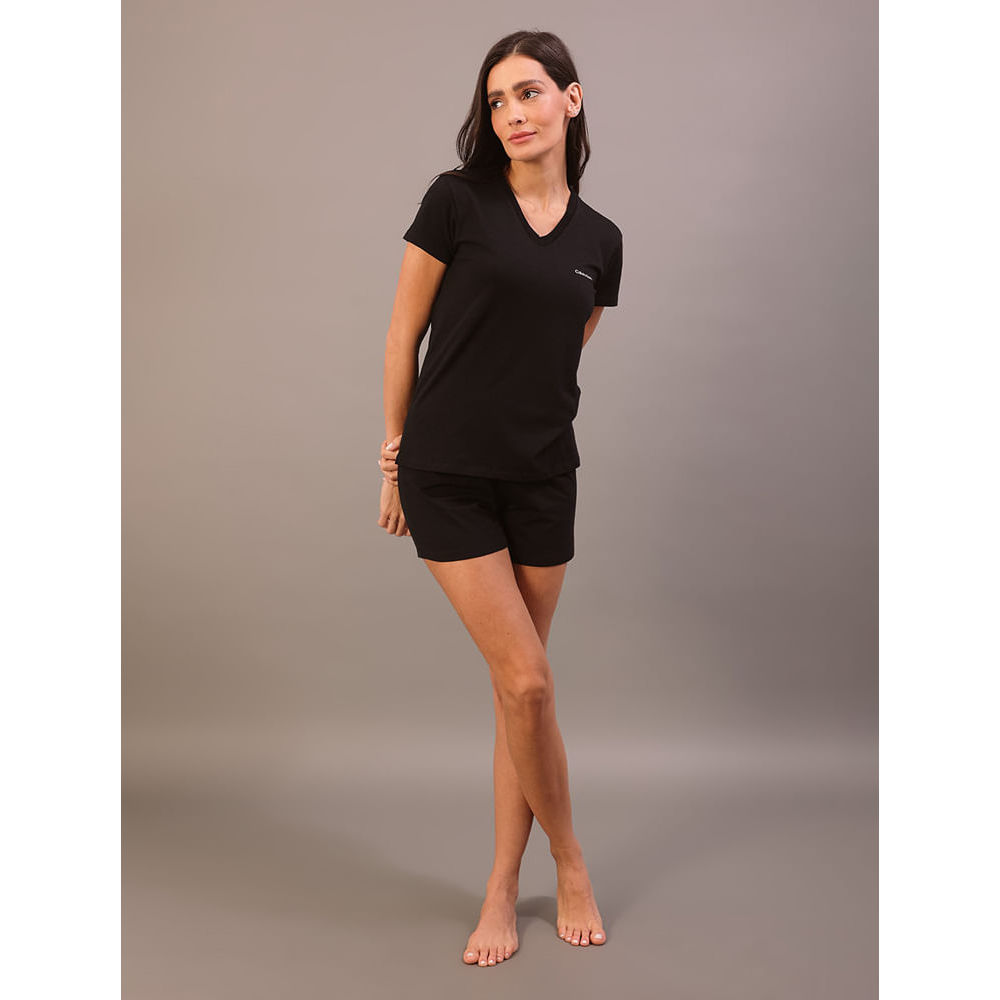 Pijama Feminino Manga Curta e Short Pima Cotton - Preto