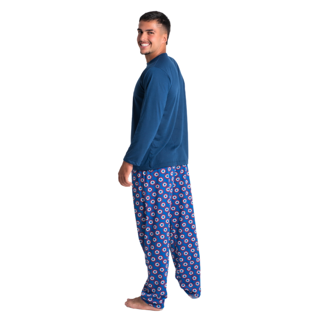 Pijama Heróis Desenho Capitão América Manga Comprida Longo Pai Frio Poliéster Linha Noite Inverno 326