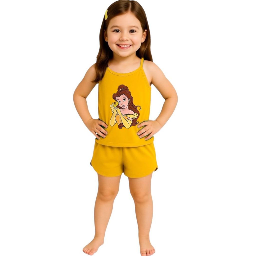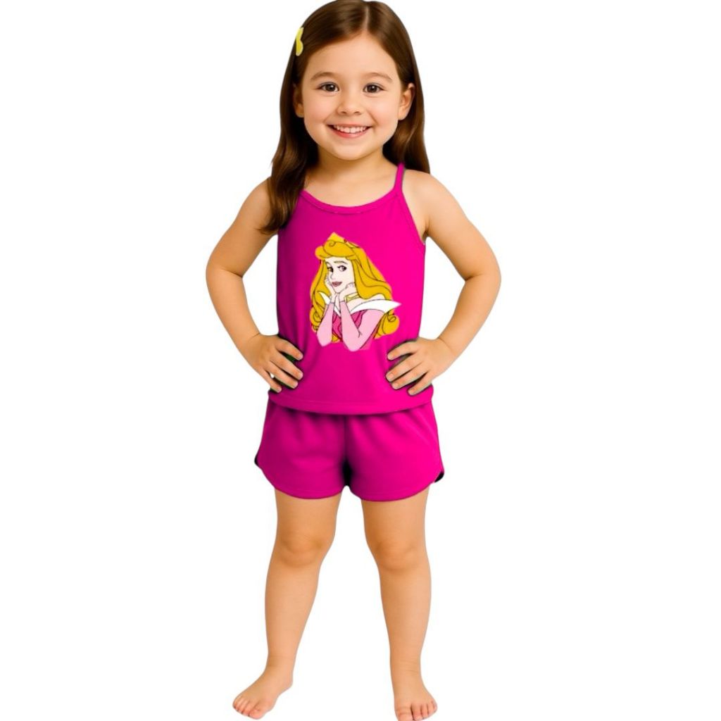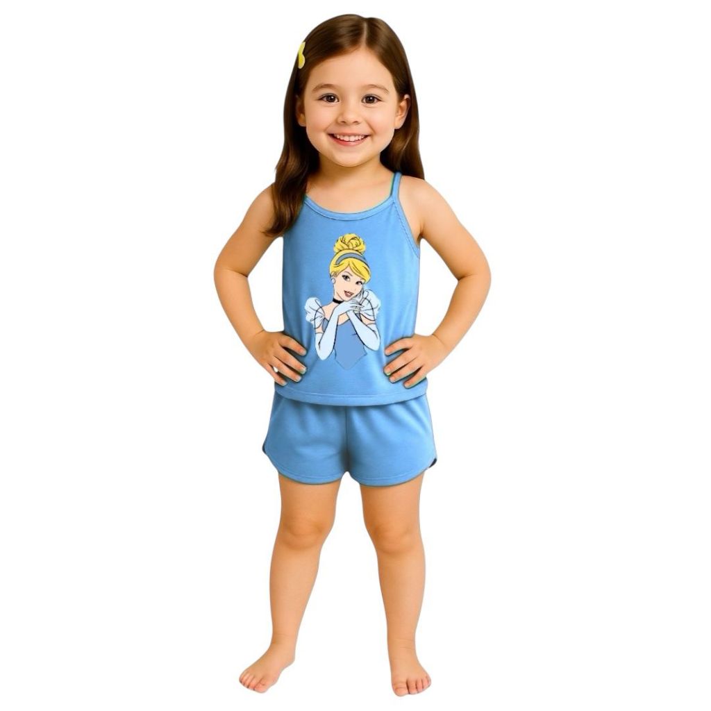 Pijama Infantil Feminino Curto Baby Doll Short Doll Alcinha Princesas Verão