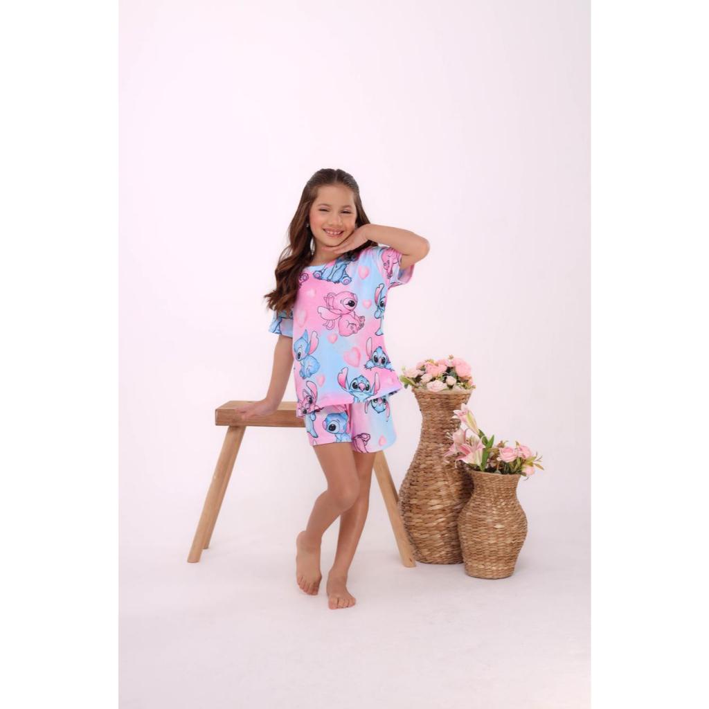 Pijama Infantil Menina Blusa Shorts Curto Personagem Roupa de dormir Festa do Pijama