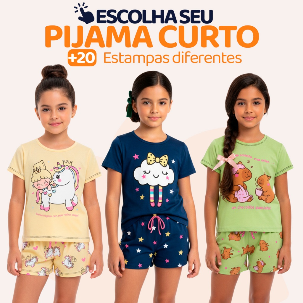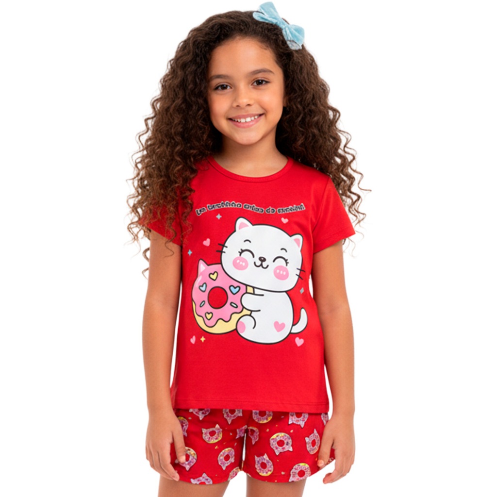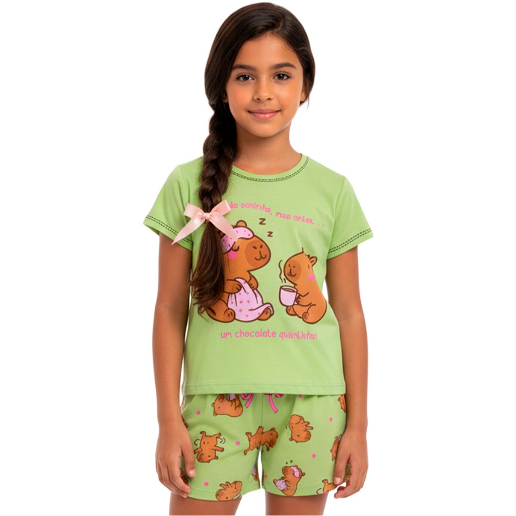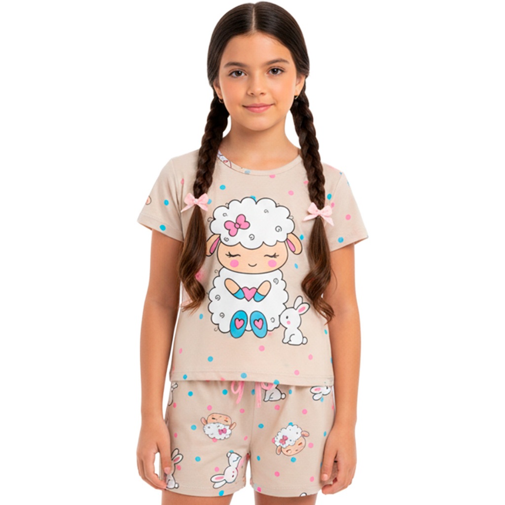 Pijama Infantil Menina Manga Curta Fresco com Estampas Fofas e Conforto Roupa Infantil Feminino Verão Calor. L06