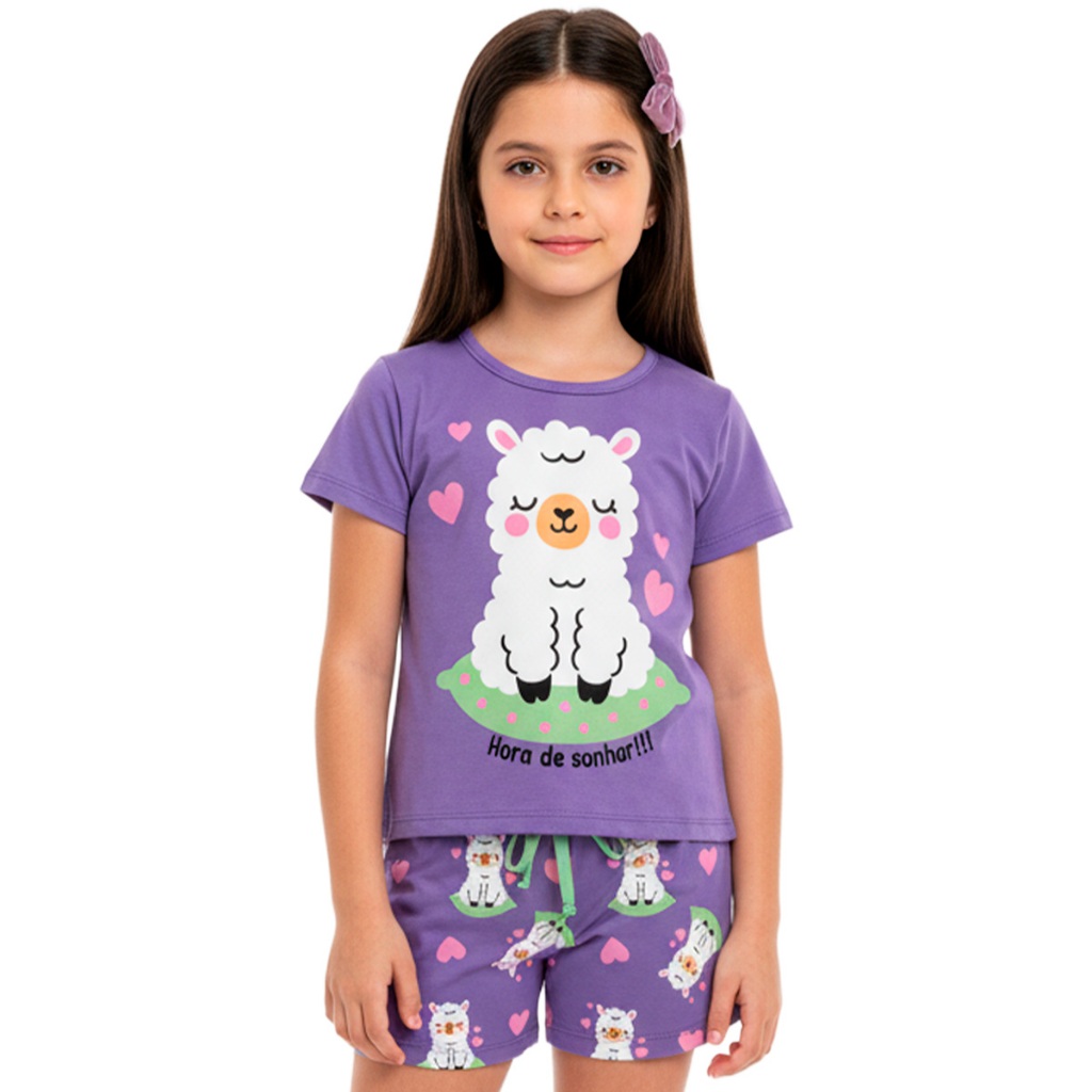 Pijama Infantil Menina Manga Curta Fresco com Estampas Fofas e Conforto Roupa Infantil Feminino Verão Calor. L06
