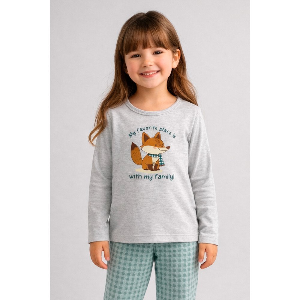 Pijama Infantil Menina Manga Longa Algodão Inverno Família Raposa