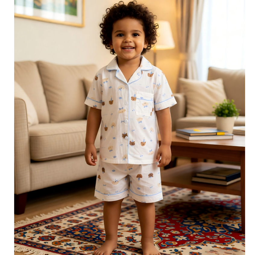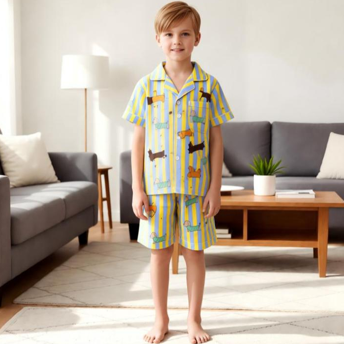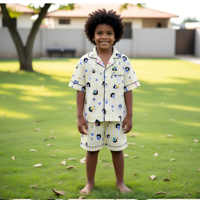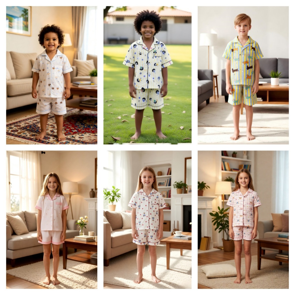 Pijama Infantil Menino Menina Verão Americano Curto Estampado Confortável Short Doll Roupa de Dormir Malha Leve