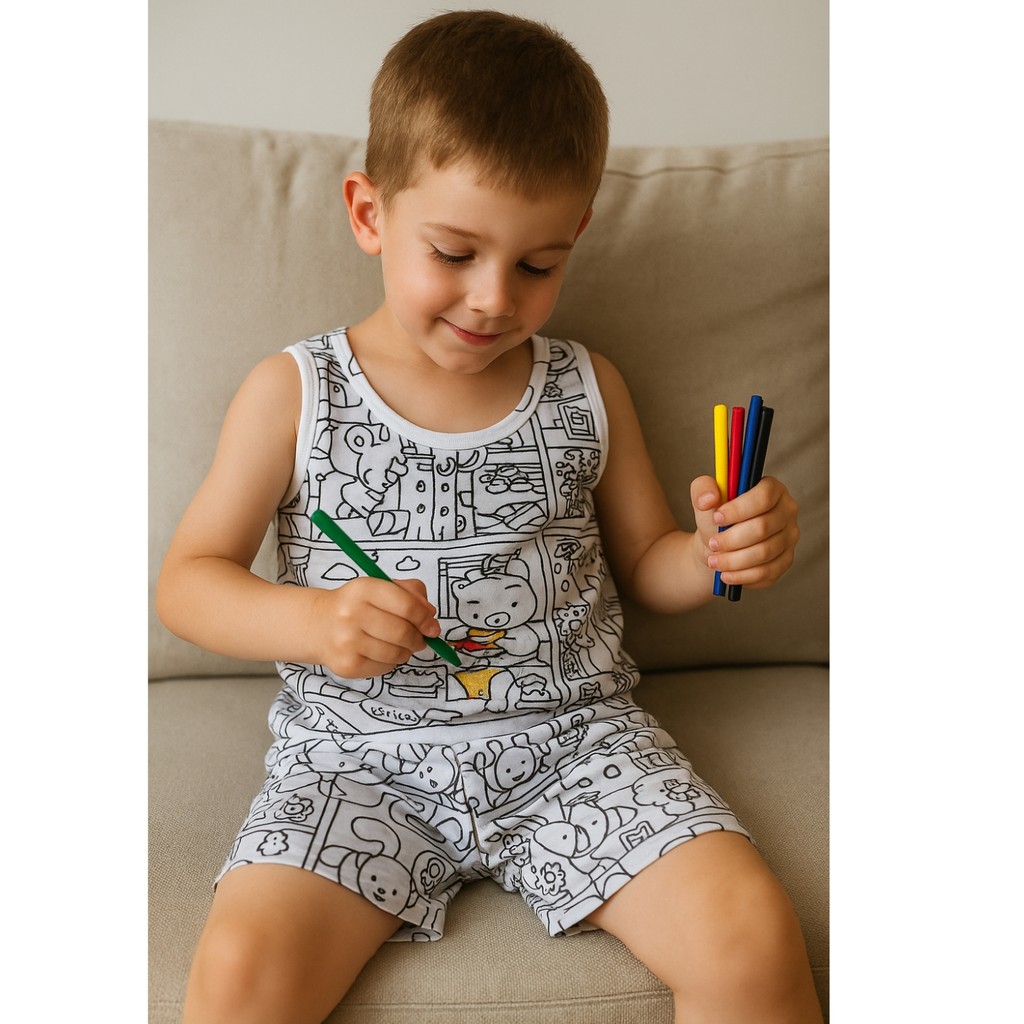 Pijama Infantil Para Colorir Conjunto Baby Doll Para Pintar Lavável