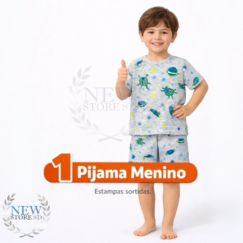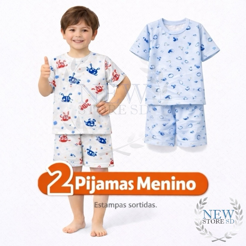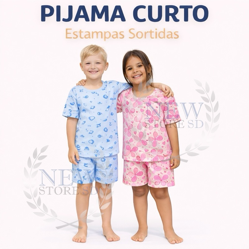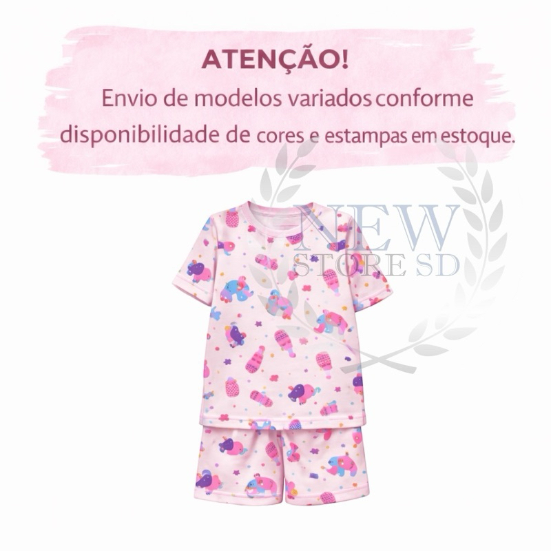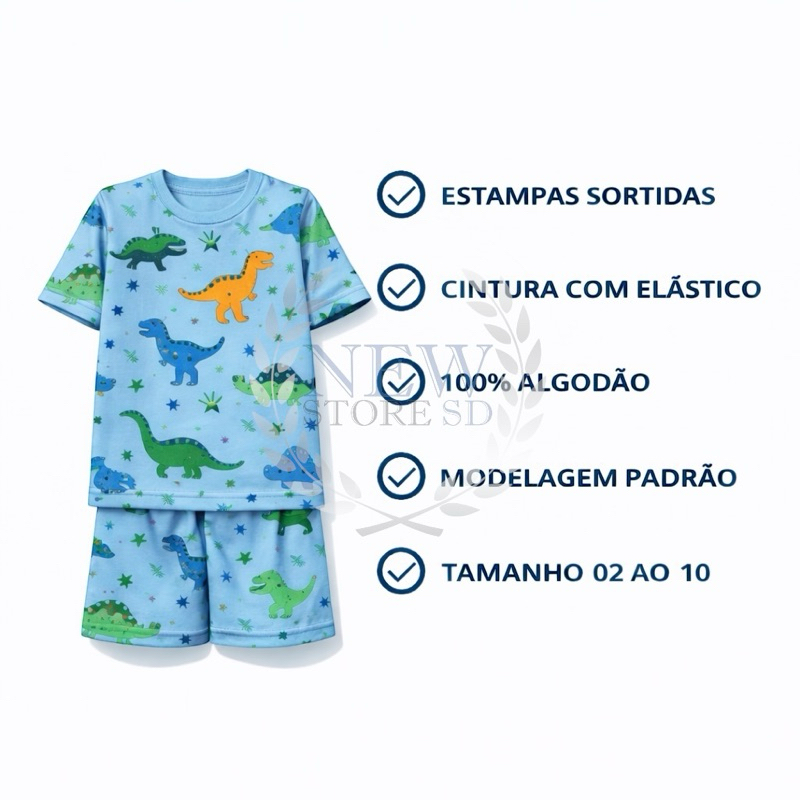 Pijama Infantil Unissex 100% Algodão 02 ao 10 Short e Manga Curta Confortável Estampas Divertidas