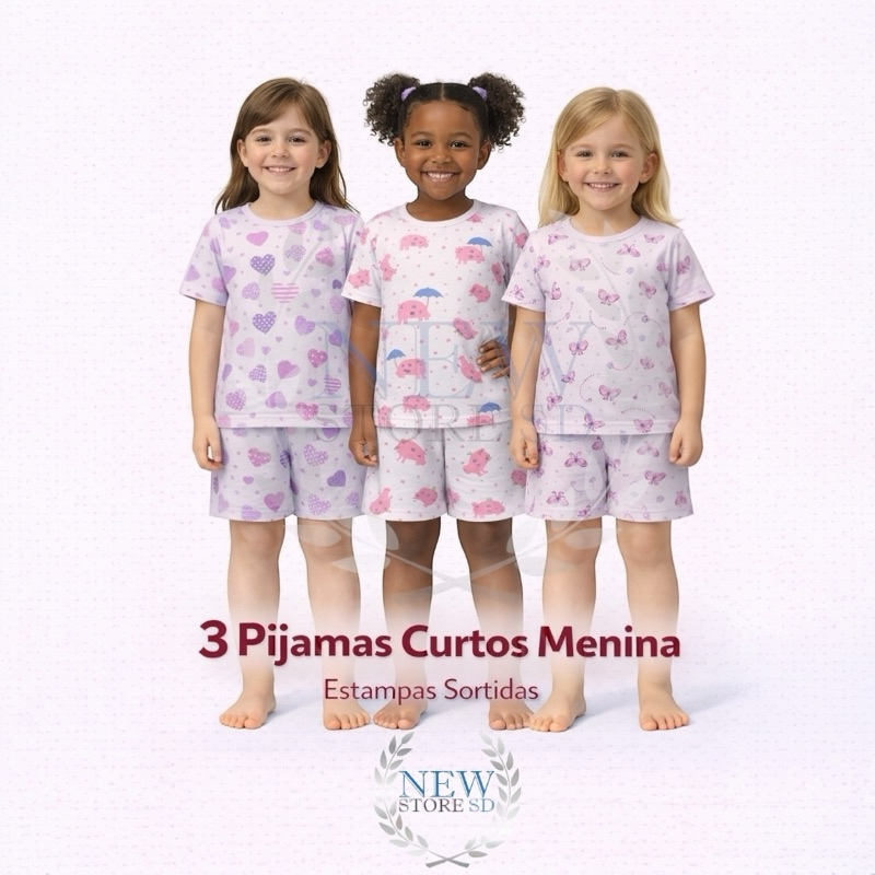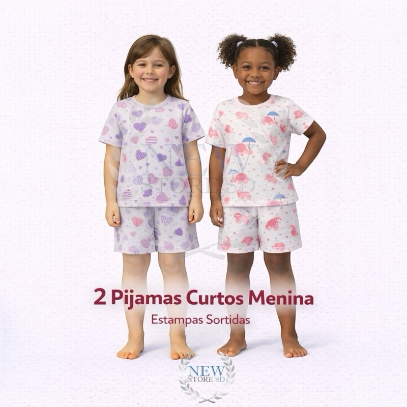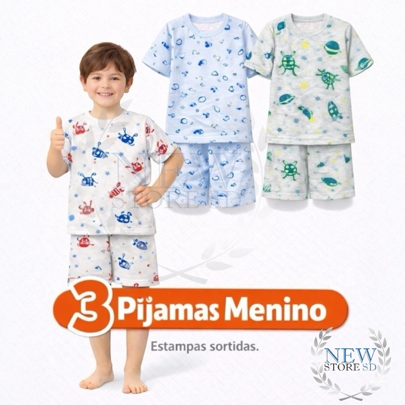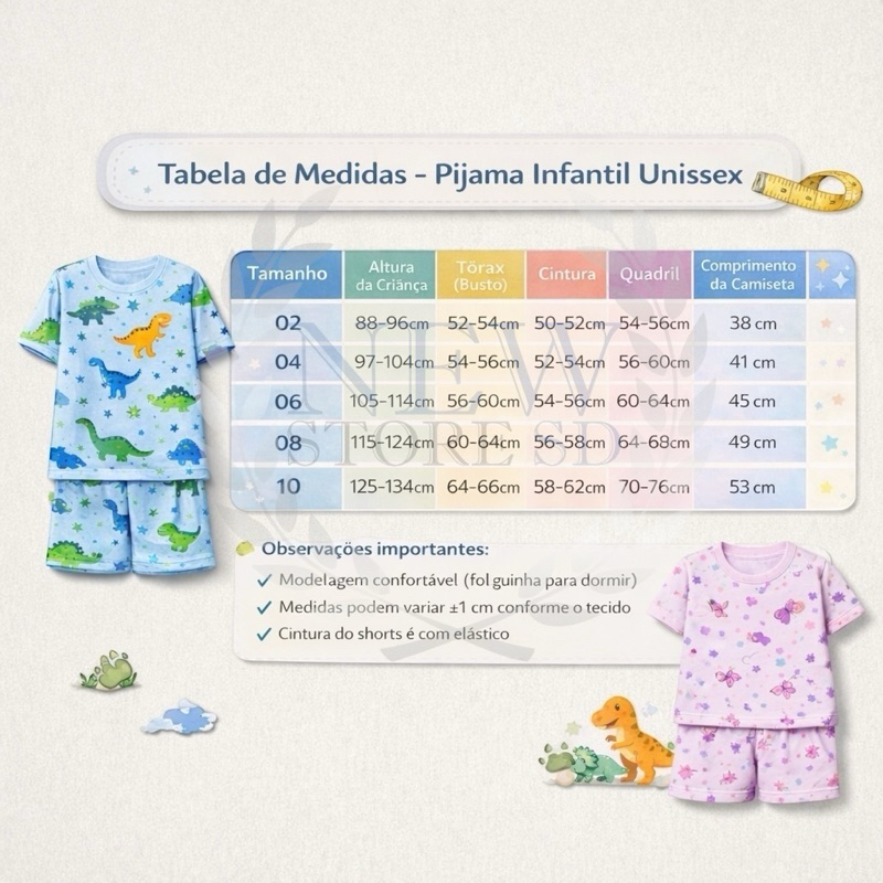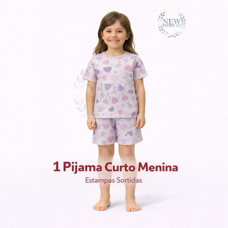 Pijama Infantil Unissex 100% Algodão 02 ao 10 Short e Manga Curta Confortável Estampas Divertidas