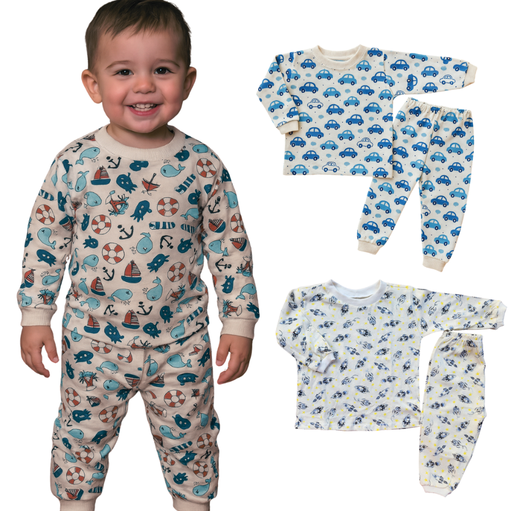 Pijama Infantil de Menino Manga Longa Masculino Bebê 100% Algodão Confortável Macio Respirável