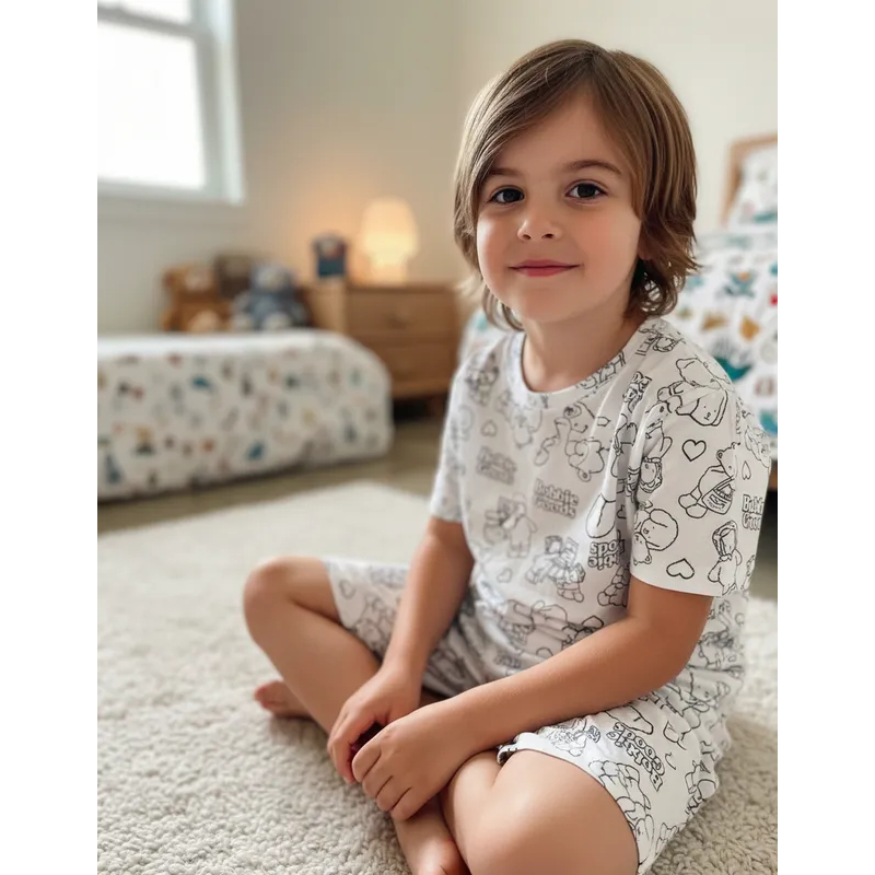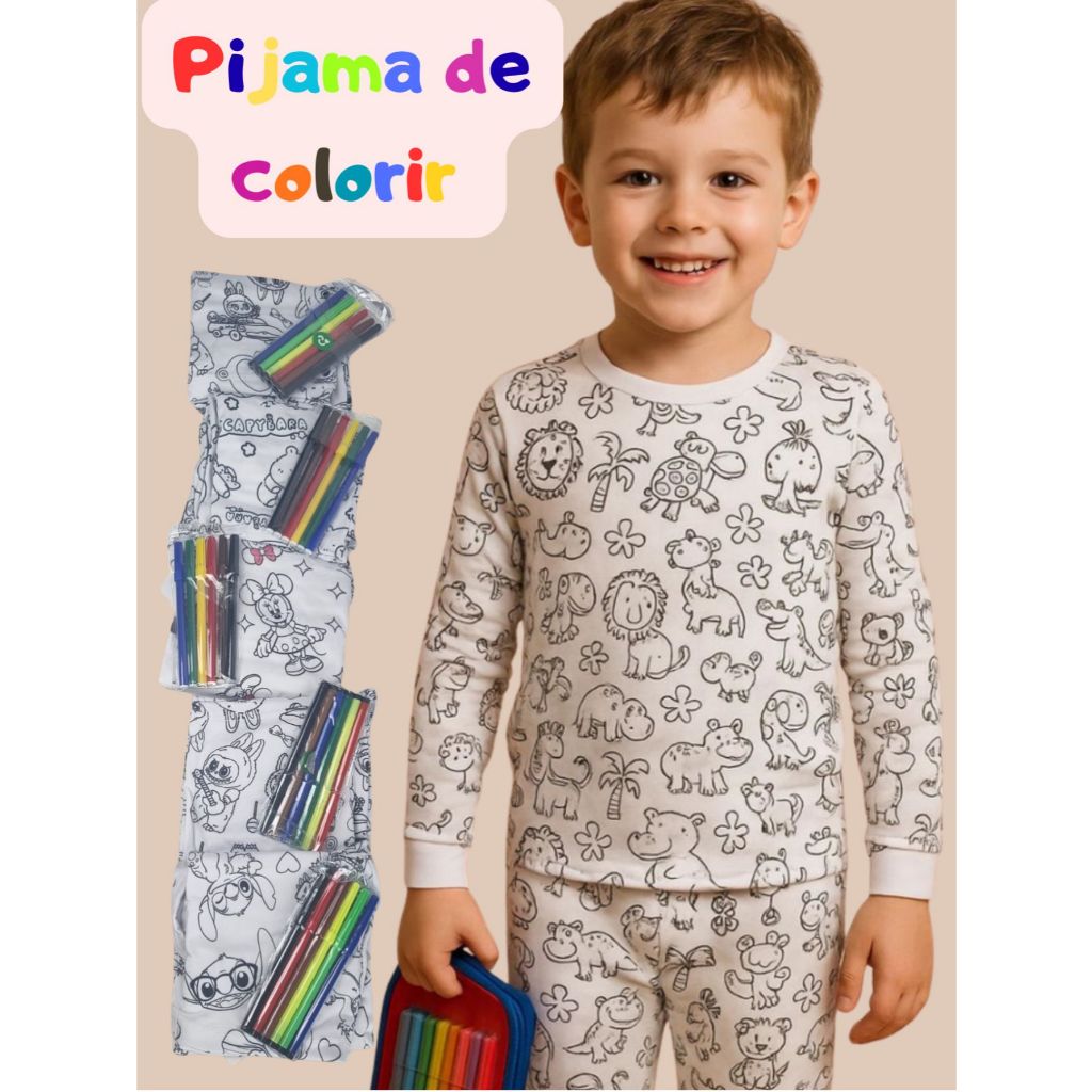 Pijama Infantil de manga longa colorir acompanha canetinha lavável diversão para as crianças