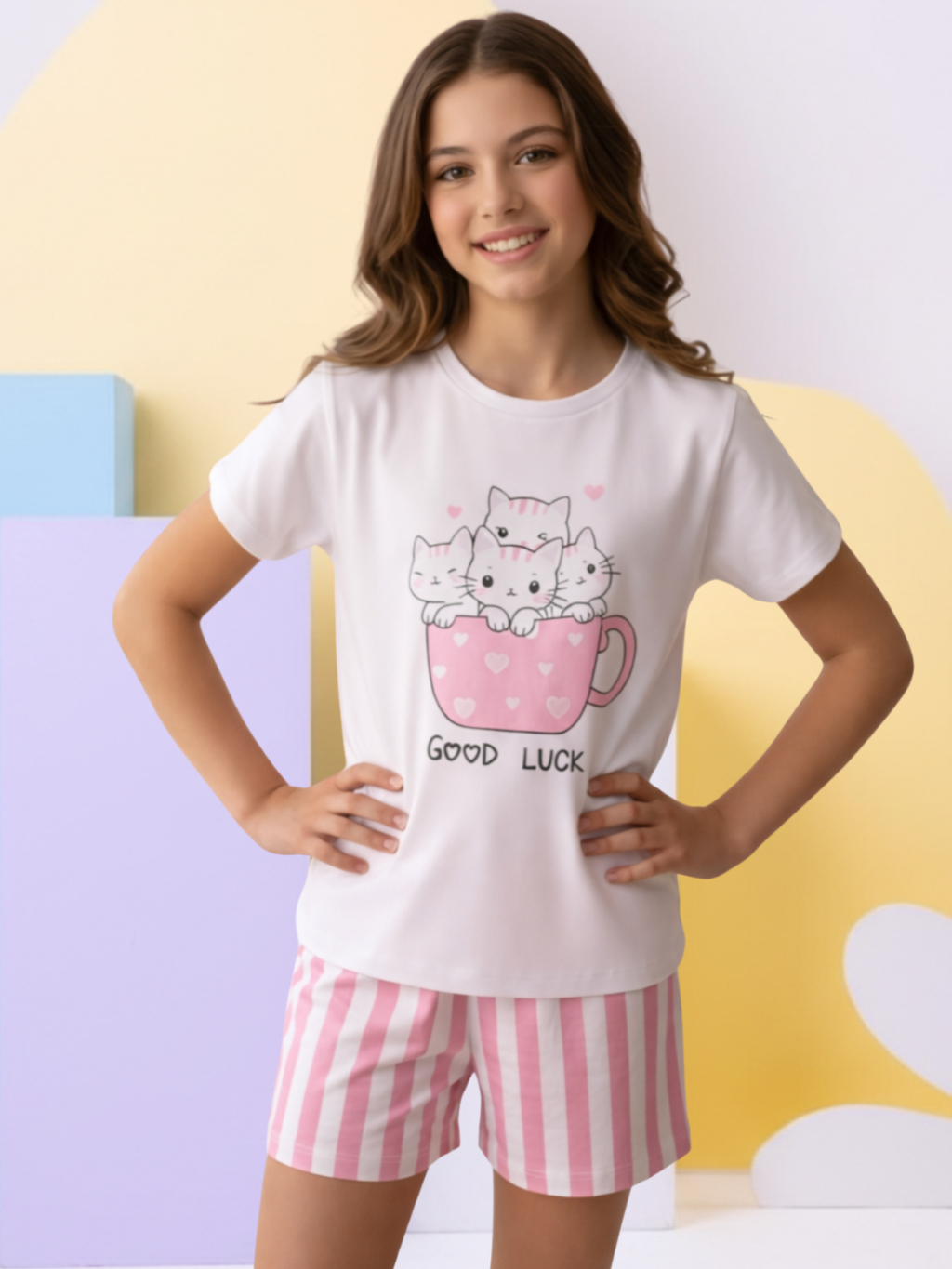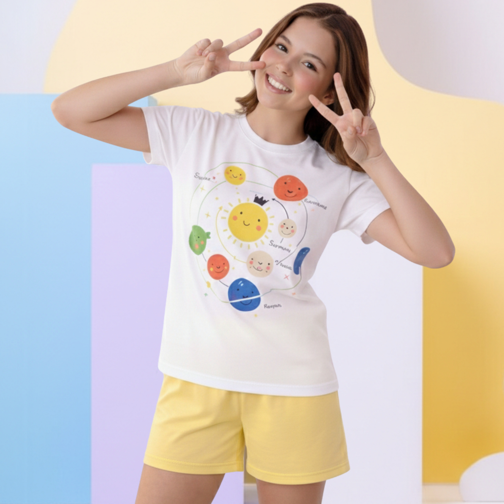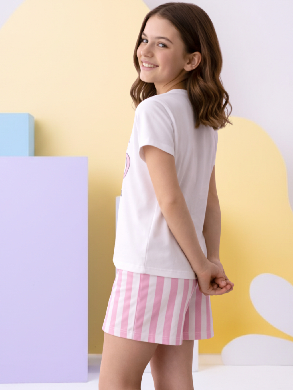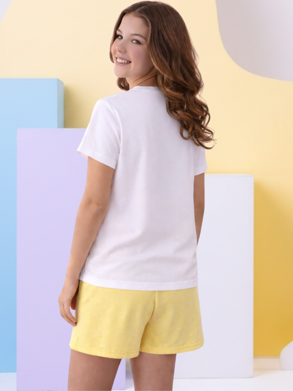 Pijama Juvenil Para Meninas Confortável e Cheio de Estilo Conjunto com short