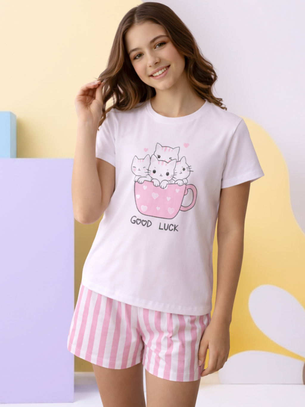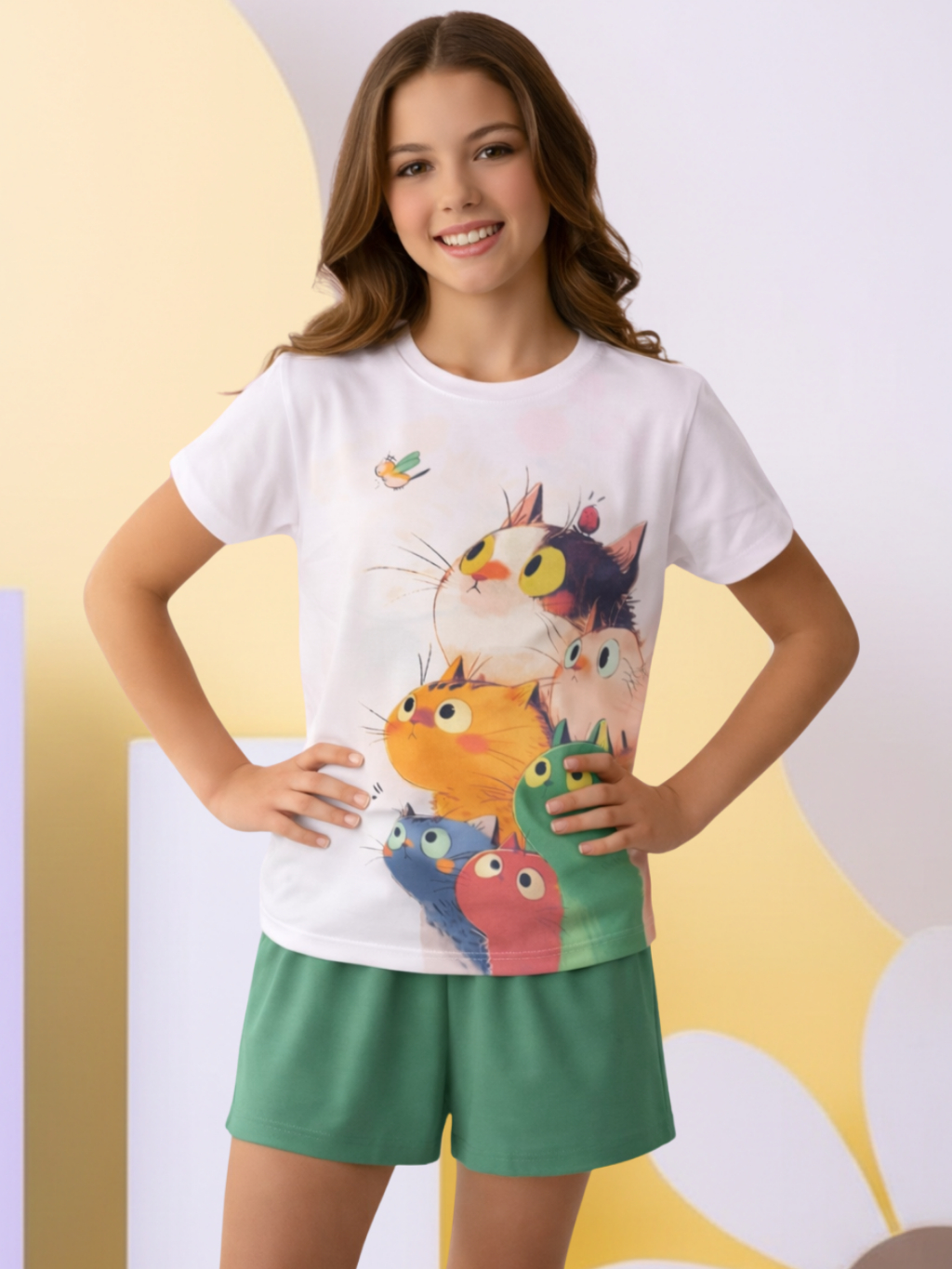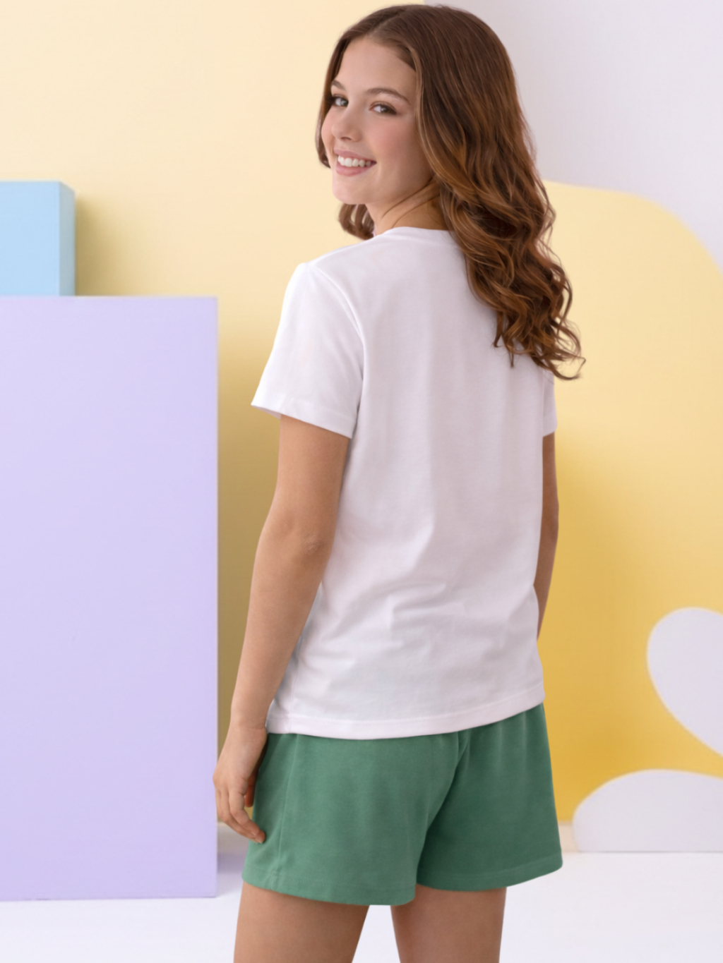 Pijama Juvenil Para Meninas Confortável e Cheio de Estilo Conjunto com short