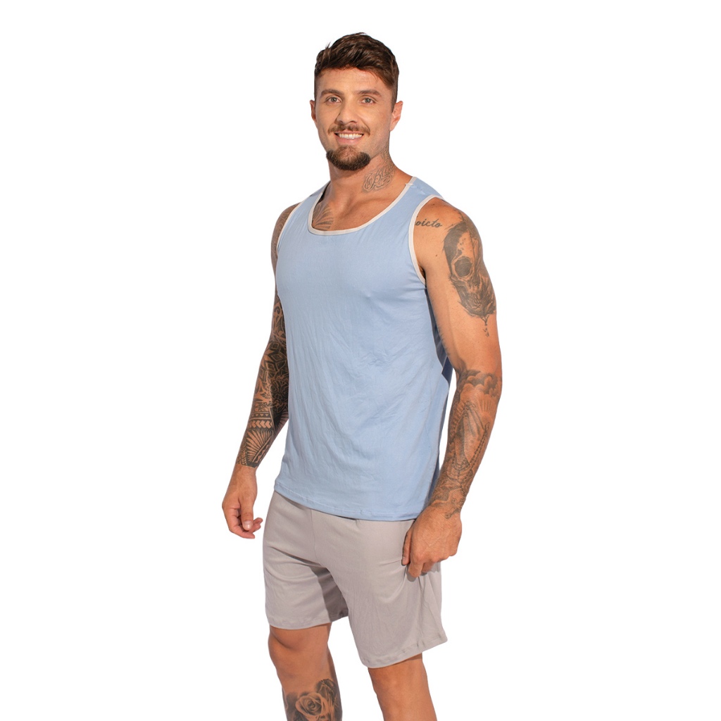 Pijama Liso Masculino Camiseta e Short Linha Noite Suede