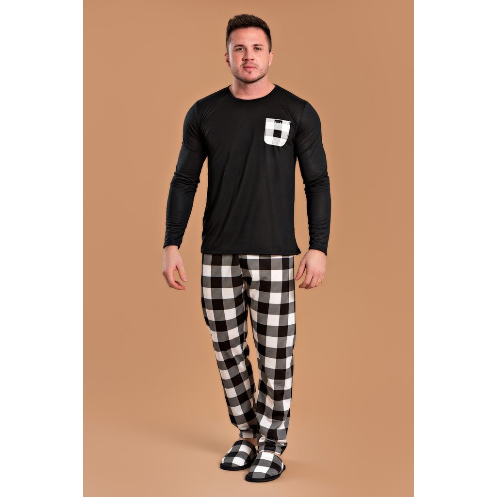 Pijama Longo Masculino Inverno Adulto Calça - Bolso Xadrez