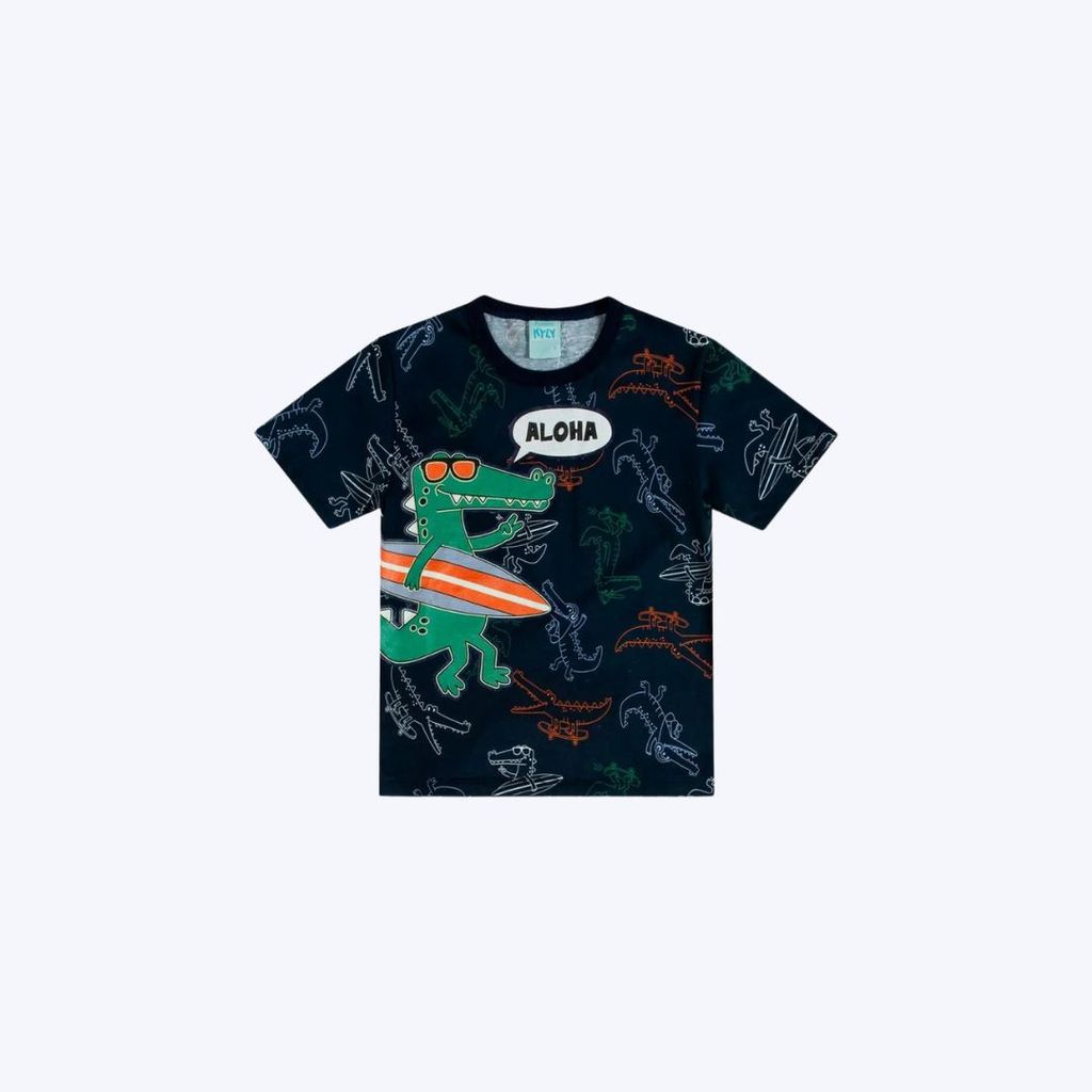 Pijama Manga Curta Jacaré Brilha No Escuro Infantil Menino Kyly 1001156 Azul Marinho