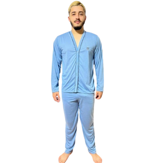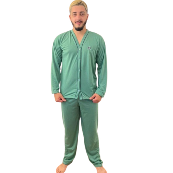 Pijama Masculino Aberto longo Botão comprido Homem Adulto Roupa Masculina Adulto