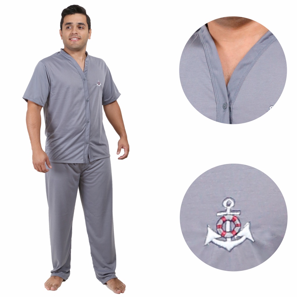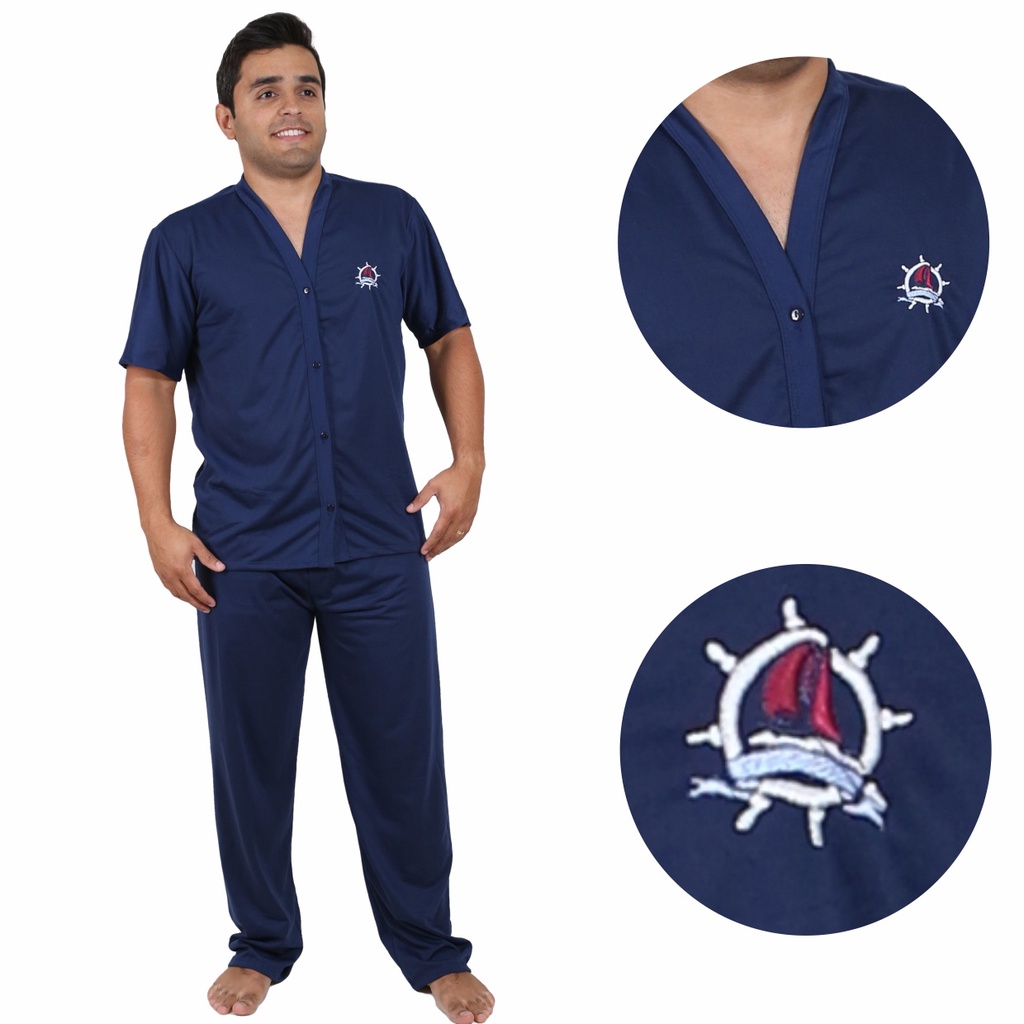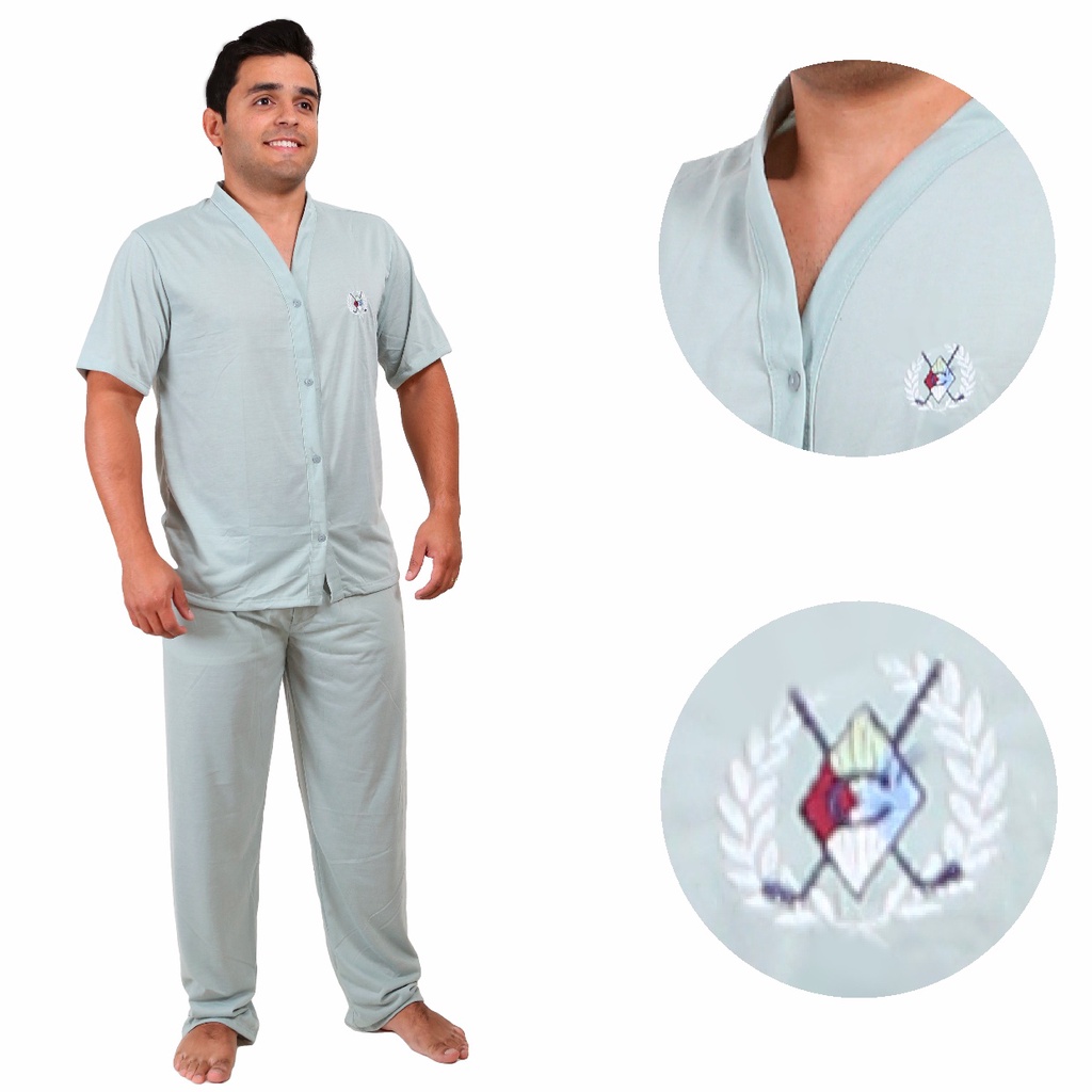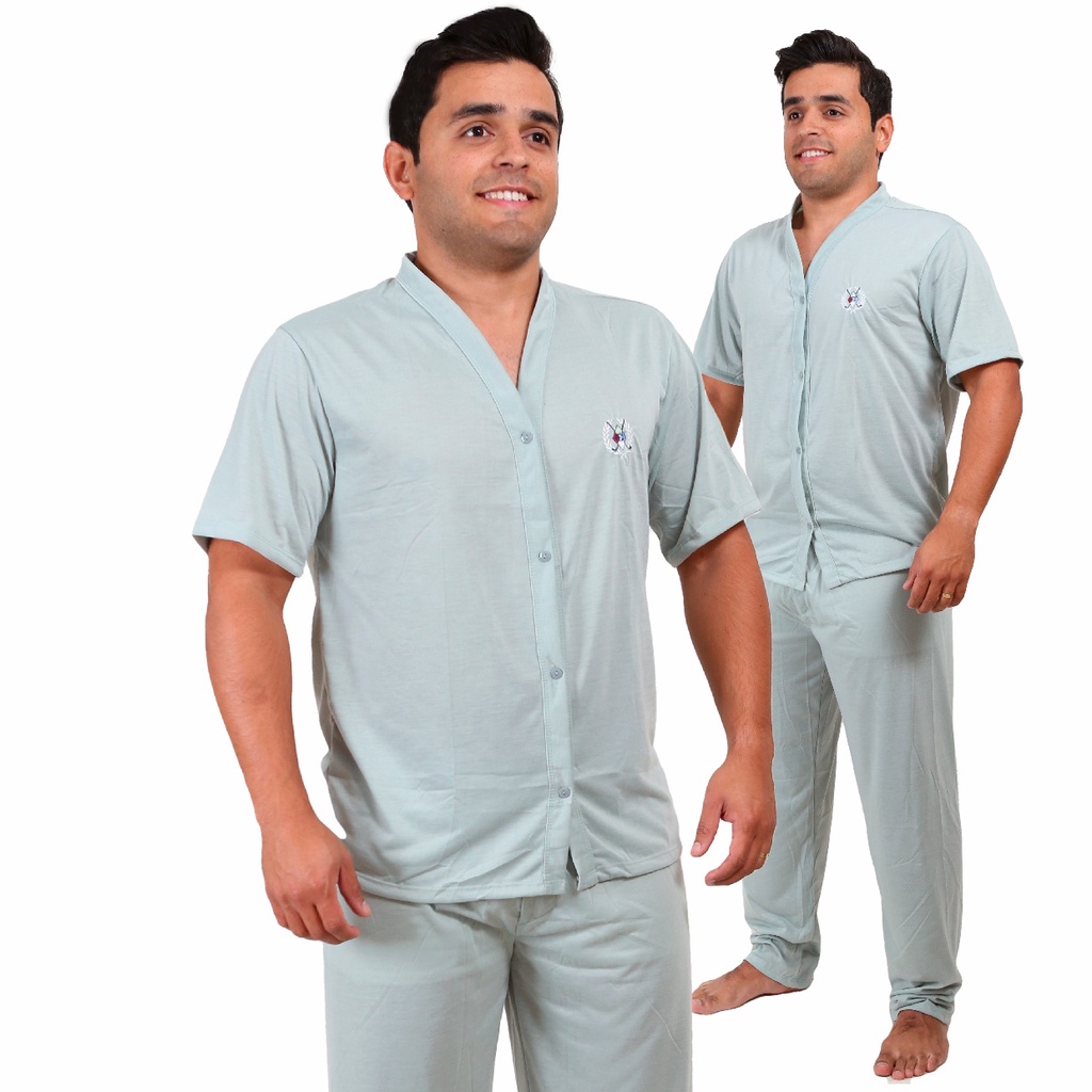 Pijama Masculino Adulto Inverno Longo Aberto Com Botão Pós Cirúrgico Premium