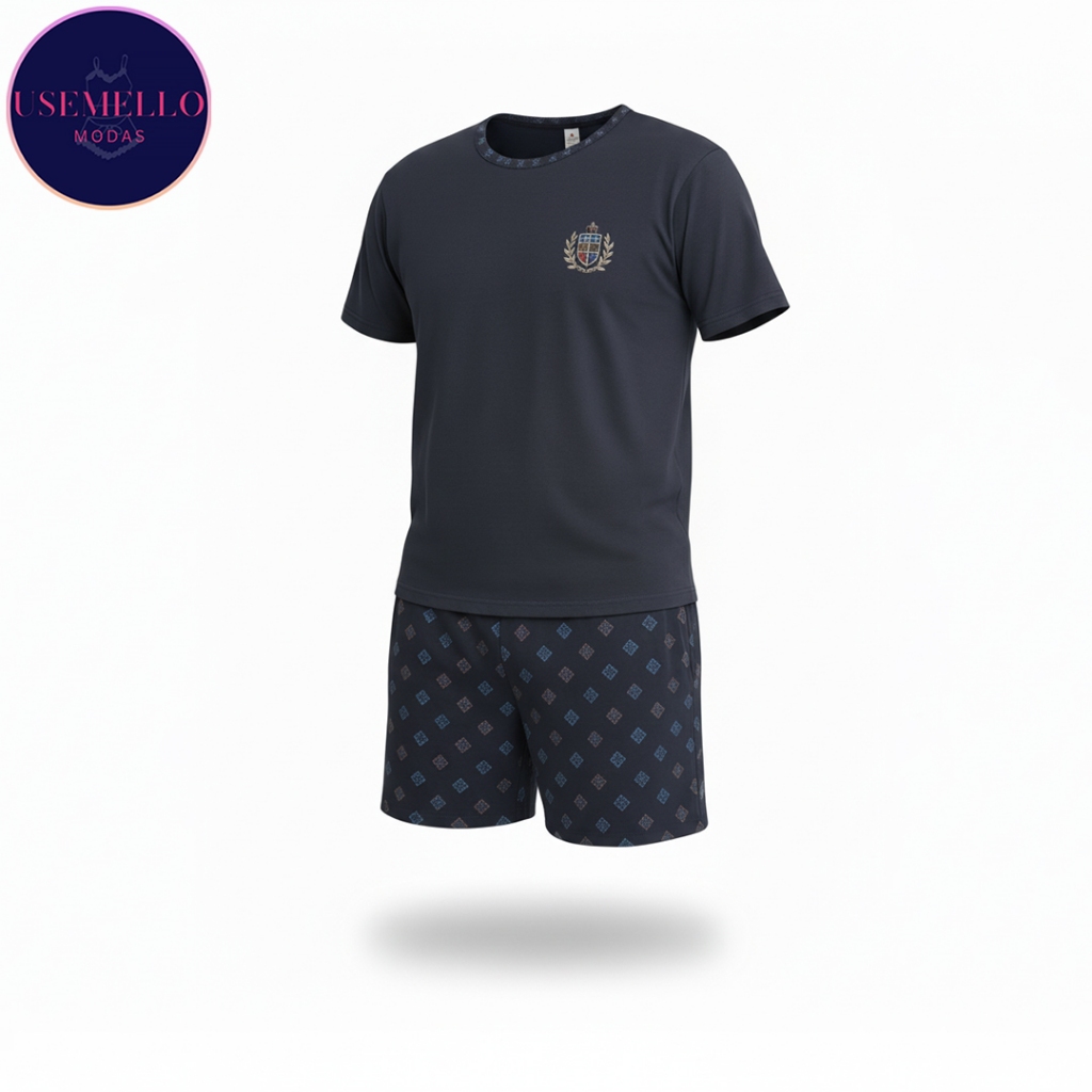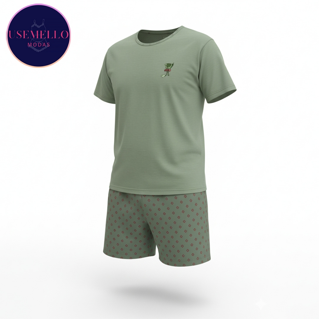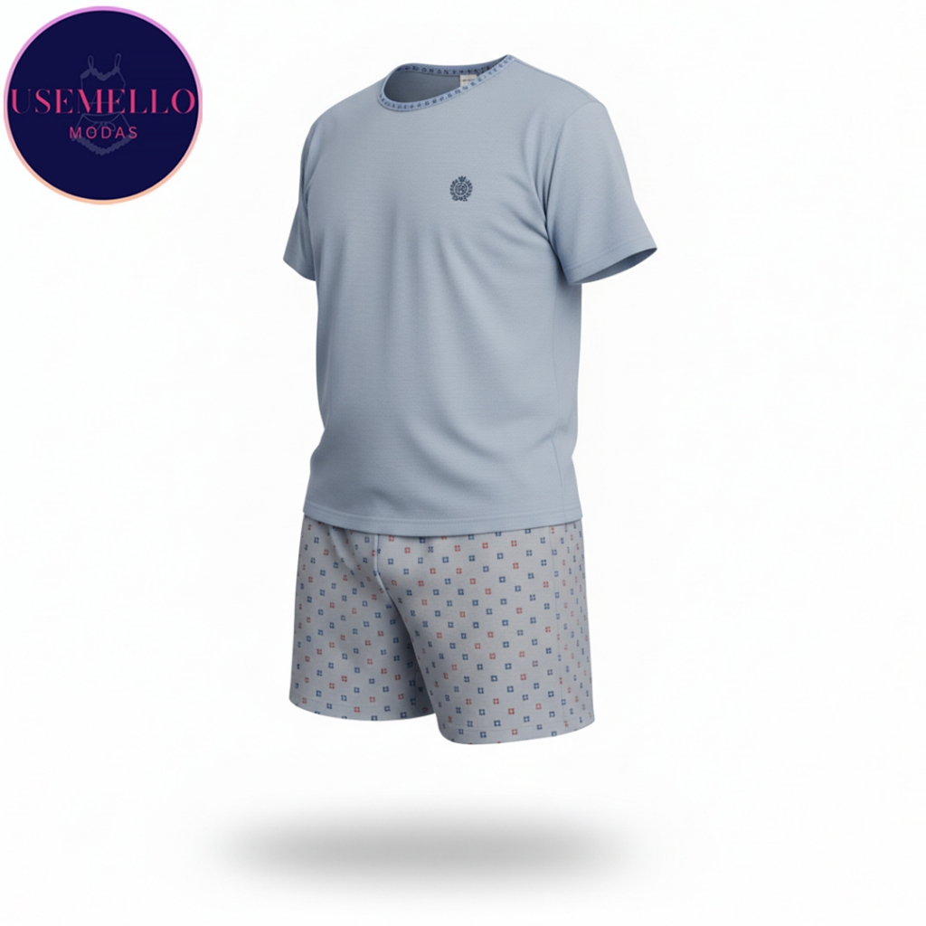 Pijama Masculino Adulto Verão – Conjunto Manga Curta e Short Leve para Dormir