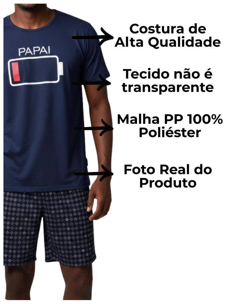 Pijama Masculino Malha PP Gola V 100% Poliéster com Short Variadas Cores Pai Bateria