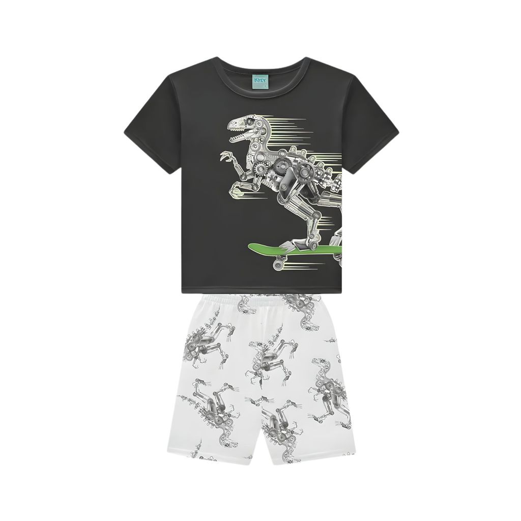 Pijama Masculino Meia Malha Estampado Detalhe Kyly