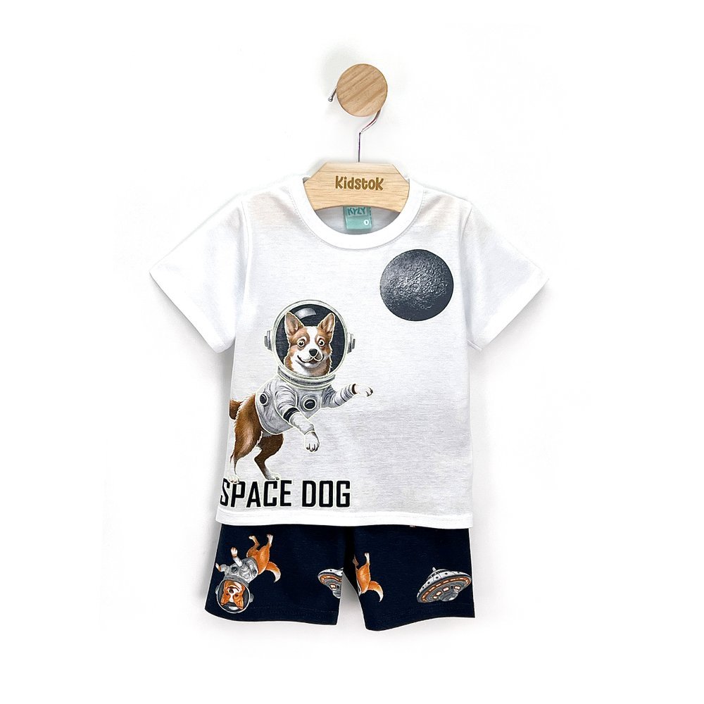 Pijama Menino Camiseta e Bermuda Cachorrinho Brilha no Escuro - Kyly