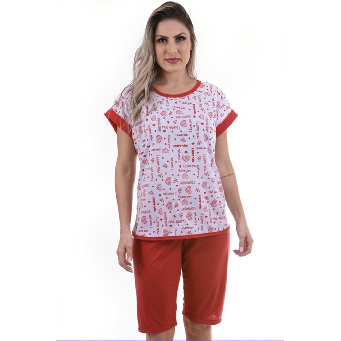 Pijama Pescador Manga Japonesa de Malha Estampado Feminino Adulto Meia Estação Qualidade e Conforto