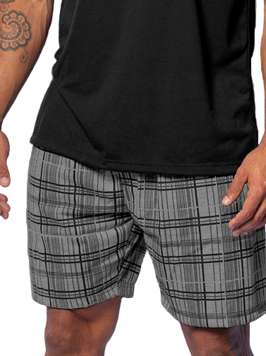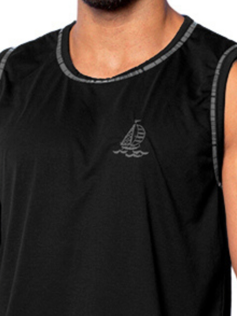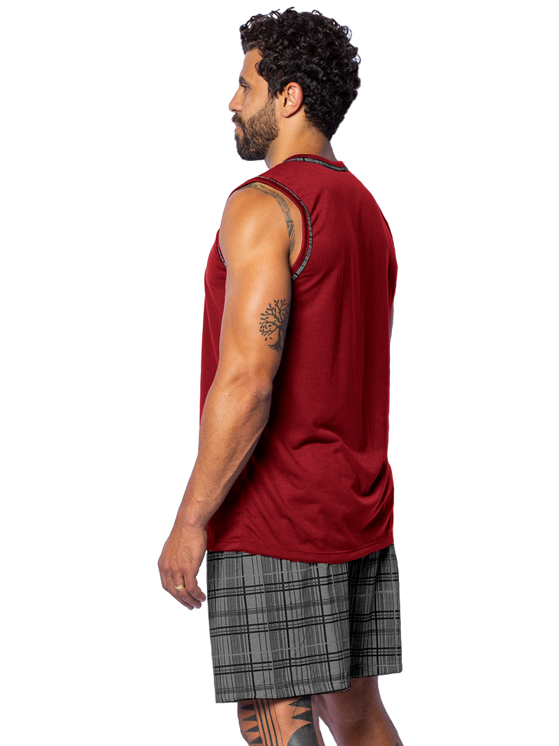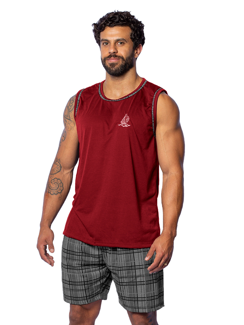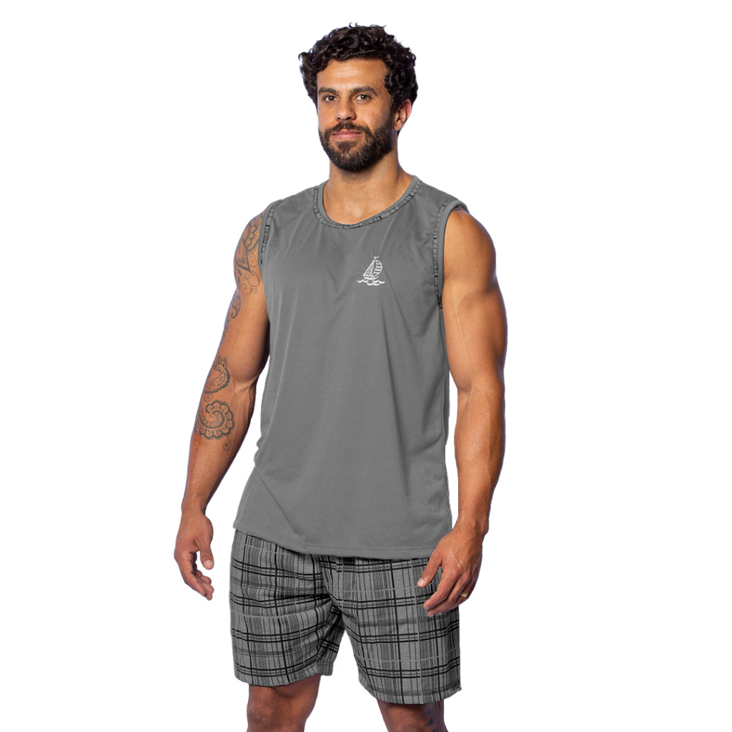 Pijama Regata Liso Bordado Masculino Conjunto de Verão Short Estampado Malha