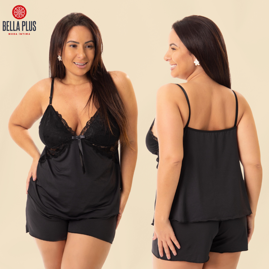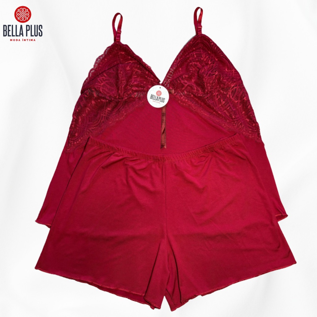 Pijama Short Doll Baby Doll Plus Size Liso Conforto C/ Renda