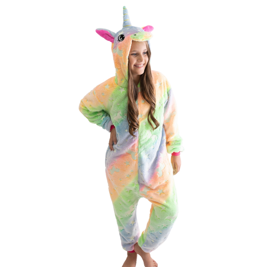 Pijama Unicórnio de menina brilha no escuro kigurumi de plush tipo mantinha quentinho de inverno