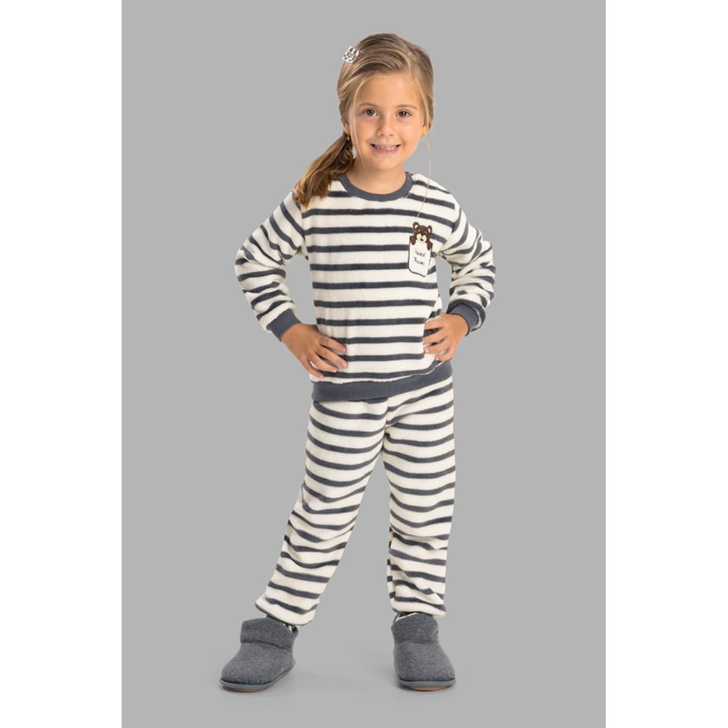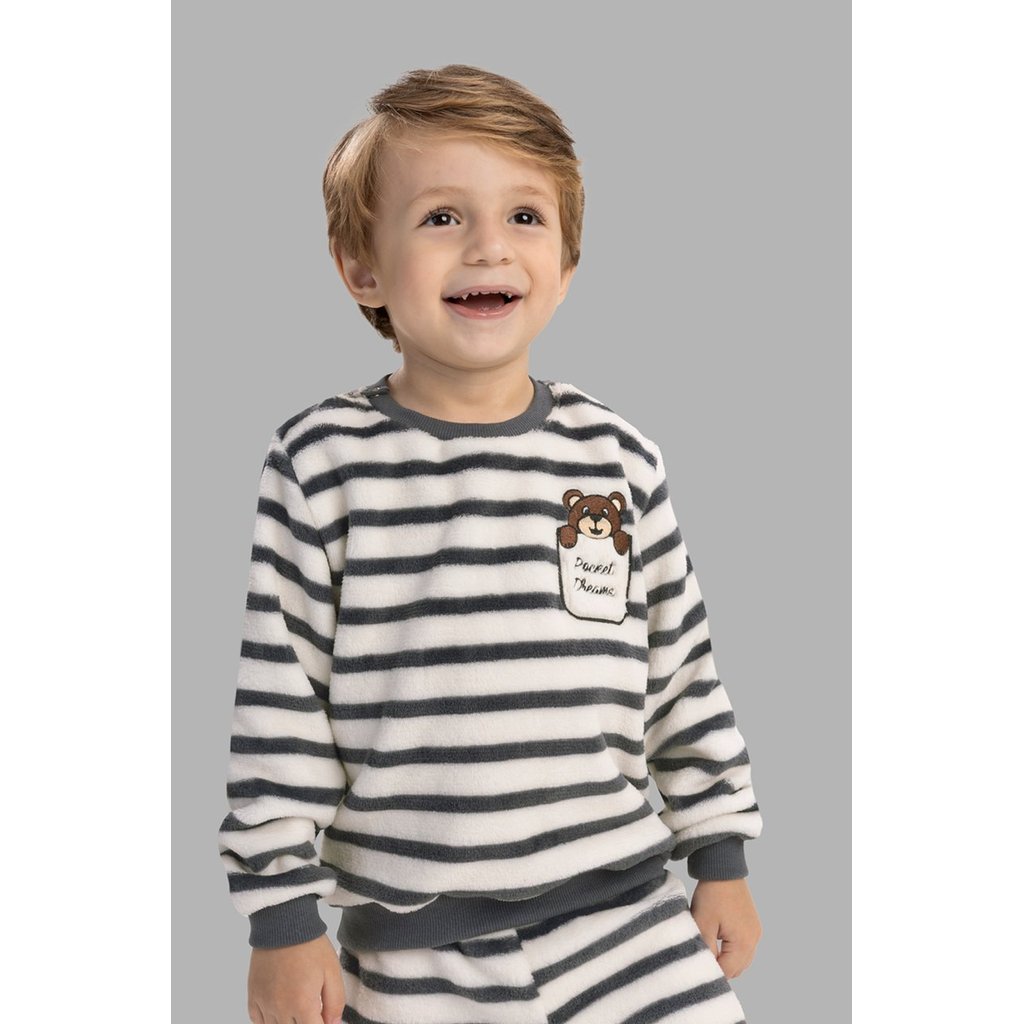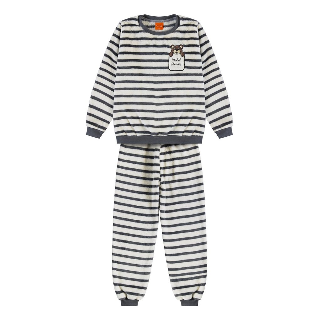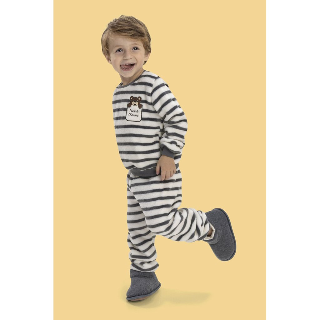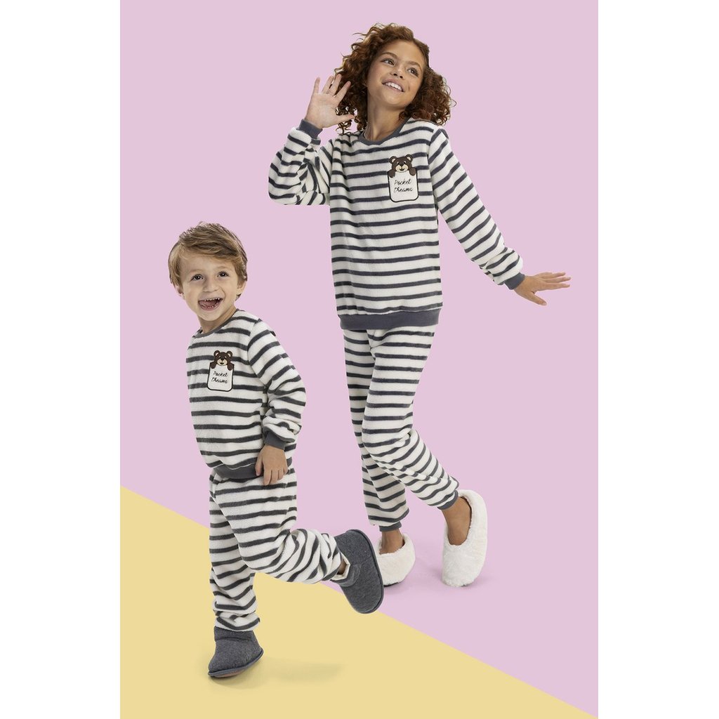 Pijama de Inverno Bebê Unissex em Soft Fleece Plush com Punho - Listrado