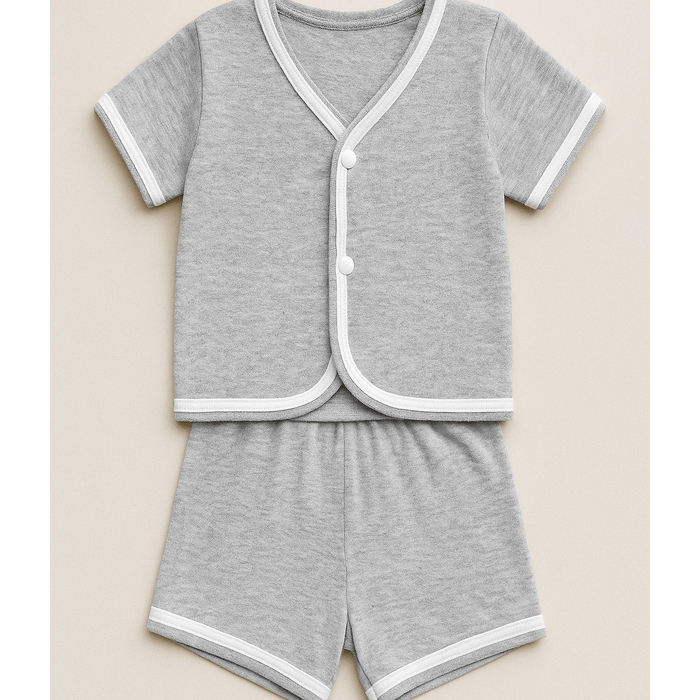 Pijama de bebe verão menino com botão fofo verão 100% algodão confortavel